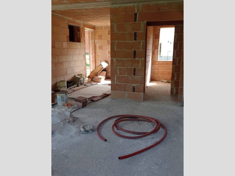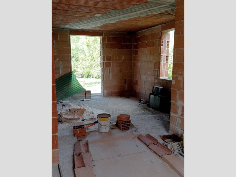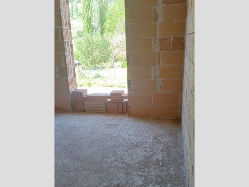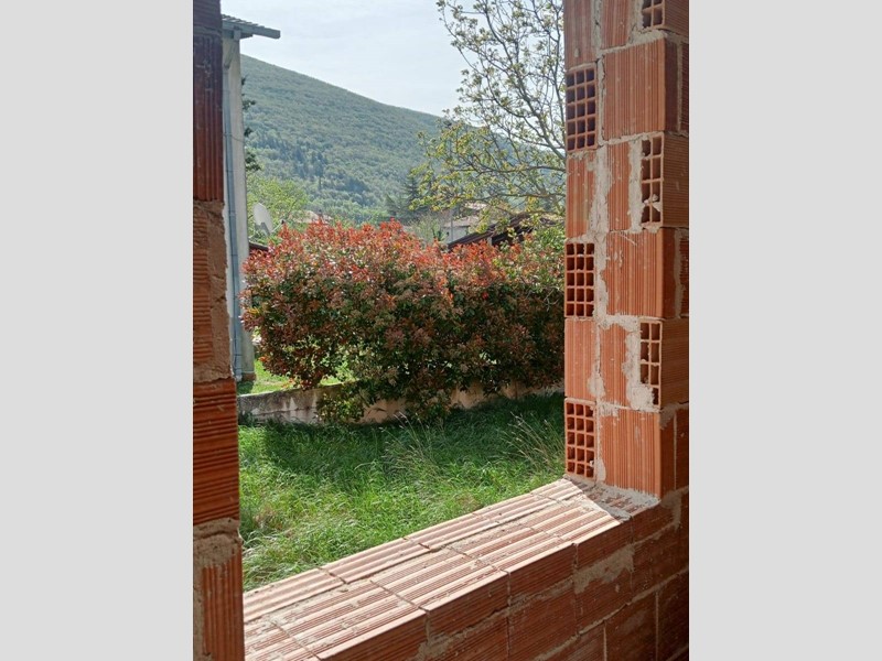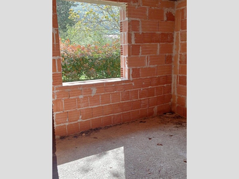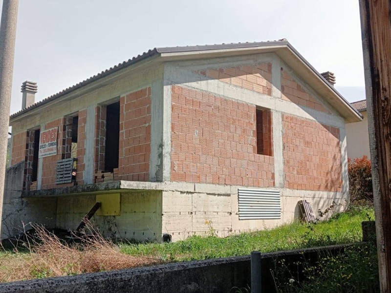 Fabriano: In località Campodonico, con affaccio sulle verdi montagne della zona, in posizione tranquilla e silenziosa, vendiamo villetta disposta su di un unico piano abitativo di mq. 90 circa con giardino esclusivo con muro di delimitazione con le proprietà confinanti. La villetta, attualmente allo stato grezzo con divisori interni fatti, è stata concepita per avere l'abitazione tutta su un piano ed il locale garage/cantina al piano seminterrato, piani collegati da una comoda scala interna. L'appartamento è attualmente composto da un soggiorno di circa mq. 25, una cucina abitabile di mq. 12 , due camere da letto e due bagni entrambe con finestra. Lo stato grezzo vi permette di poterla rifinire con le finiture che più vi piacciano. Posizione assolata. Per coloro che ne avesse la necessità, si può acquistare un terreno agricolo di fronte alla casa, completamente pianeggiante.