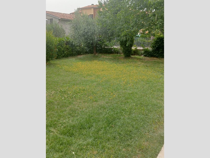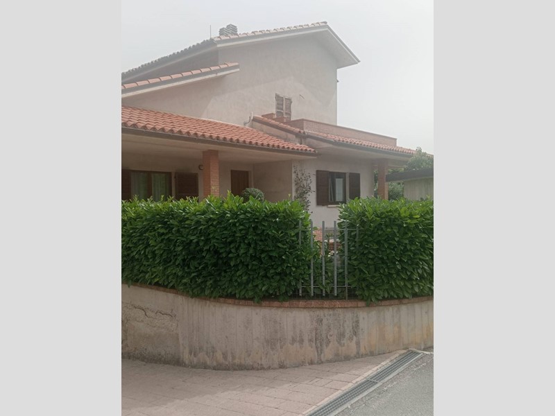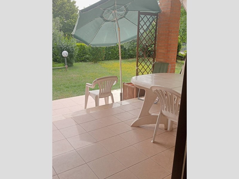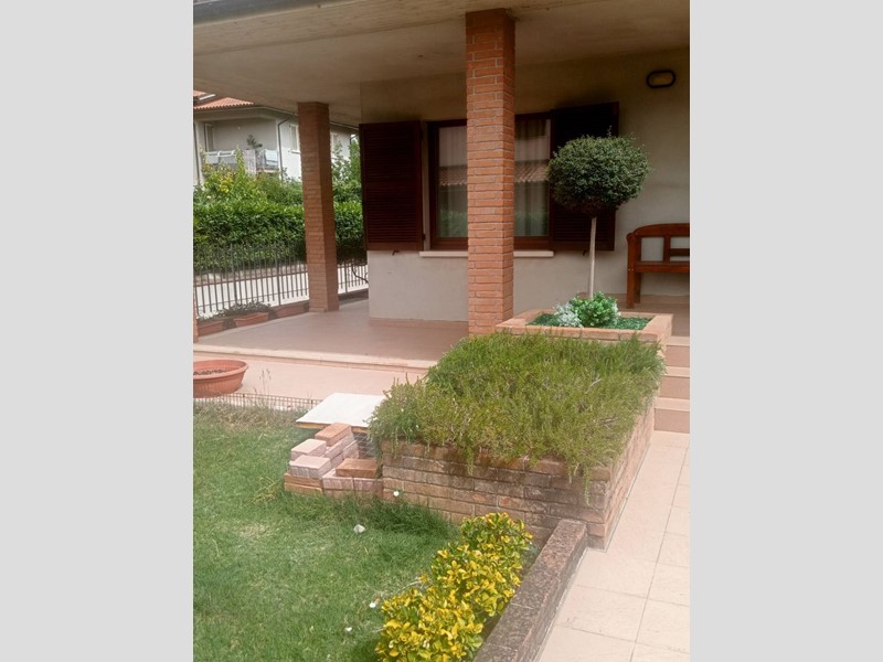 La villetta, completamente recintata, ha un giardino, ben piantumato e completo di pozzo ed impianto d'irrigazione, di circa mq. 600. Molto carino il loggiato d'ingresso ed il porticato dal quale si accede in giardino uscendo dalla cucina.