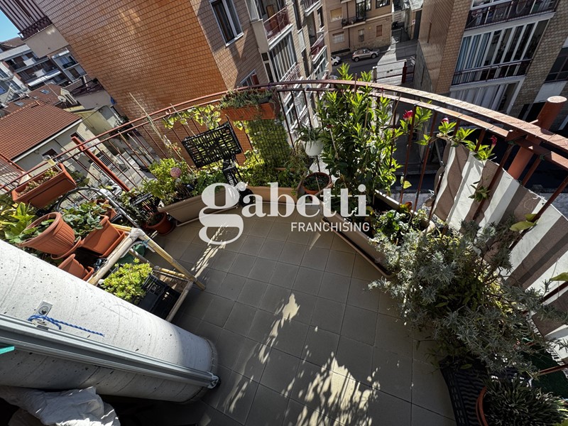 Telefono: 011.32.94.268 BORGATA LESNA - Le agenzie GABETTI di corso Sebastopoli 243 e corso Agnelli 66 propongono in vendita in VIA BIONAZ, nei pressi di via Monginevro e via De Sanctis, in stabile SIGNORILE del 1992 privo di barriere architettoniche, dotato di ascensore e giardino condominiale, TRILOCALE di 80 mq al 4° PIANO, con TRIPLA ESPOSIZIONE e splendido TERRAZZO ANGOLARE.