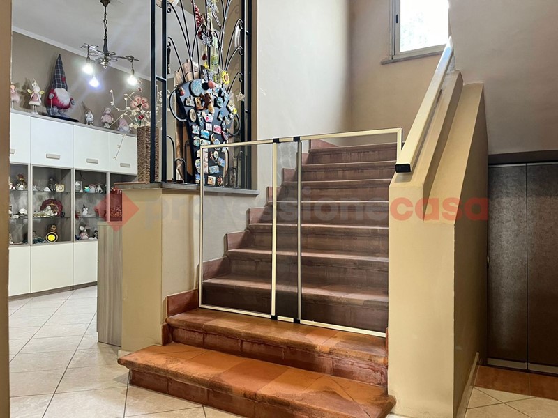 - piano primo di circa 130 mq oltre balconi di 40 mq, accessibile dal vano scala interno, formato da 5 camere, 2 bagni, ripostiglio;