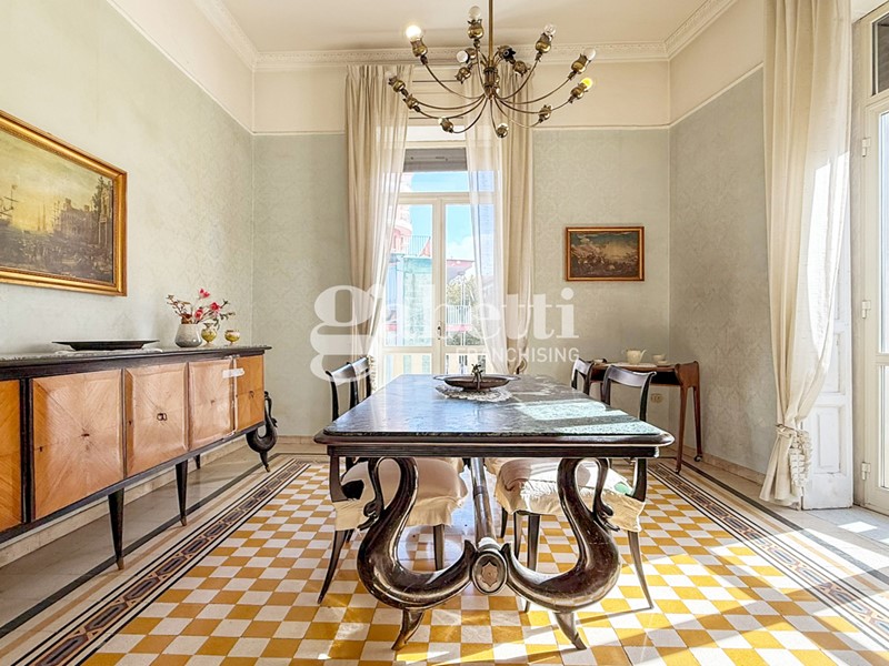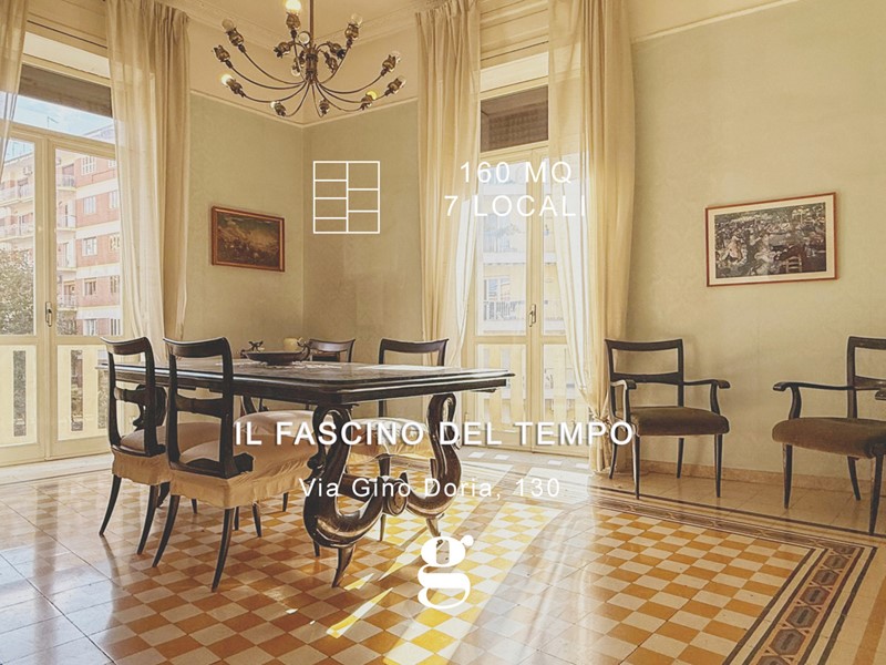 Nel cuore pulsante del Vomero, in Via Gino Doria 130, a pochi passi dalle vie pedonali dello shopping e perfettamente collegato alla tangenziale, sorge questo affascinante appartamento di 160 mq, collocato al quinto piano di un elegante edificio d'epoca dotato di ascensore e servizio di portineria.?Una dimora che conserva intatto il fascino del tempo: i soffitti alti 3,85 metri disegnano proporzioni rare e armoniose, mentre le cementine originali di fine Ottocento raccontano la storia di un passato autentico e raffinato. Le cornici e i decori a soffitto aggiungono un tocco di poesia d'altri tempi, in dialogo con la luce che entra generosa dalle ampie aperture e dai cinque balconcini, che affacciano sul cuore del quartiere regalando scorci di vita urbana e frammenti di cielo.