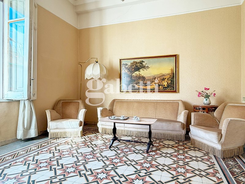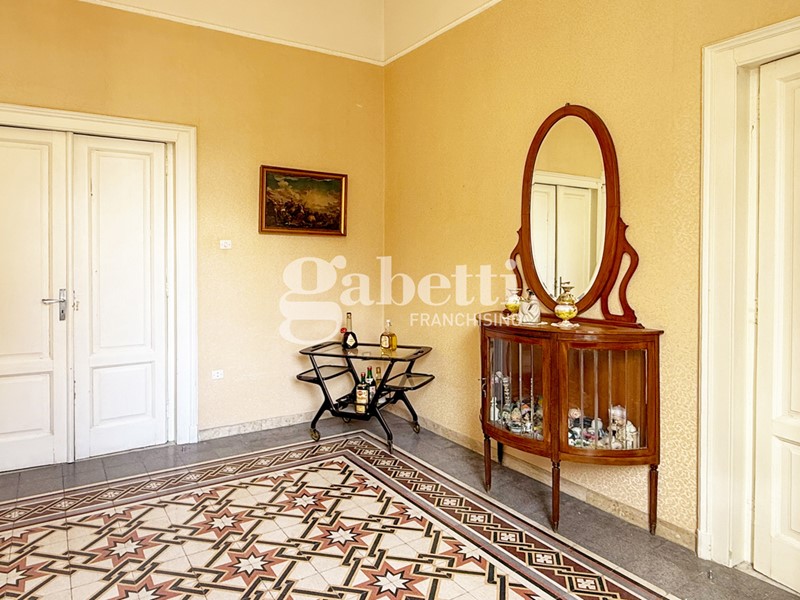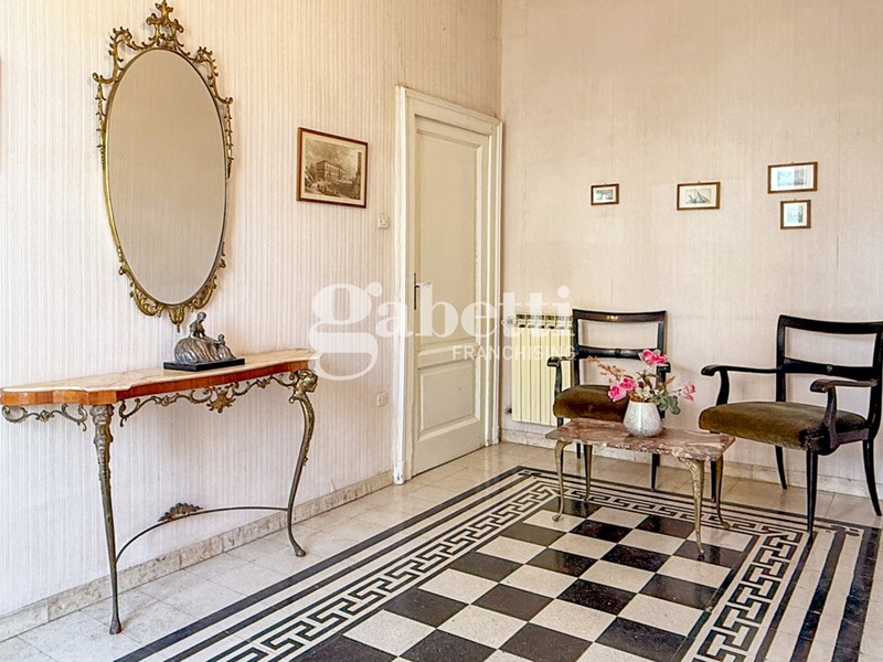 La disposizione interna, articolata in sette locali oltre cucina e due bagni, offre ampie possibilità di reinterpretazione: le tramezze consentono una facile ridistribuzione degli spazi, ideale per chi desidera realizzare un progetto contemporaneo che dialoghi con la memoria architettonica originaria.