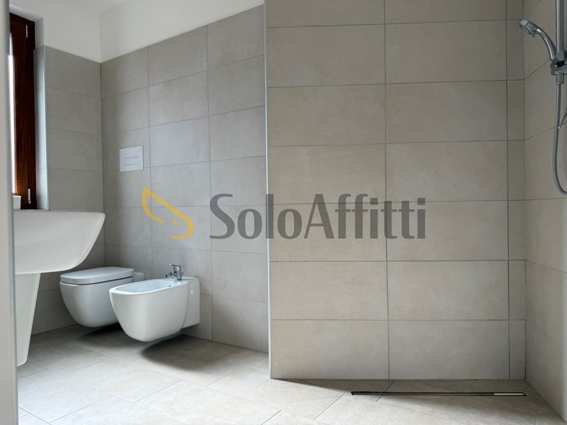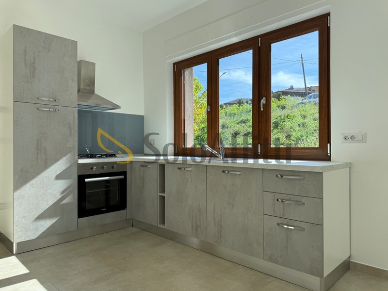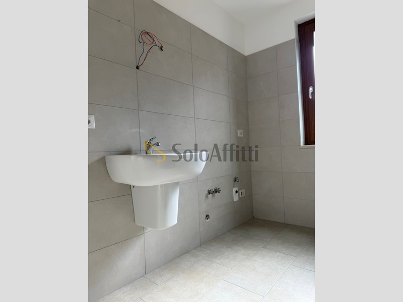 L'appartamento è locato parzialmente arredato; il mobilio è completamente nuovo, come visibile nelle foto. La cucina ad angolo è completa di piano cottura, frigorifero e congelatore ad incasso, forno e lavastoviglie, mentre la camera da letto è fornita di armadio, letto matrimoniale, due comodini e un commode con specchio.