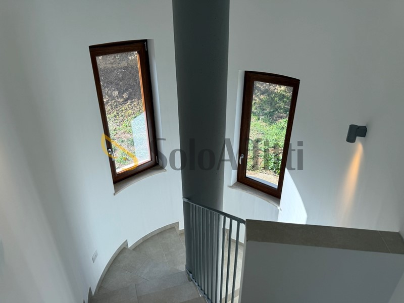 L’unità abitativa si sviluppa su due livelli e ha una superficie complessiva di circa 85 mq. Al primo piano si trova un'ampia zona giorno e un bagno completo di servizi e doccia. Il secondo piano ospita una camera da letto matrimoniale con balcone, che offre una suggestiva vista panoramica, e una seconda camera, ideale per un piccolo studio, oltre a un secondo bagno.