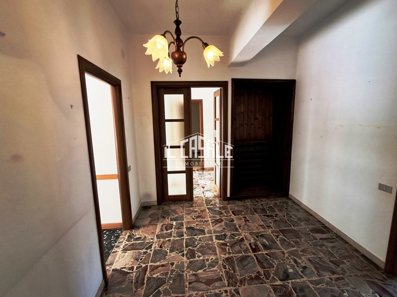 L’immobile è suddiviso in cinque vani e si compone di cucina abitabile, soggiorno, tre camere matrimoniali oltre ripostiglio, servizio finestrato e piccola veranda adibito a piccola lavanderia.