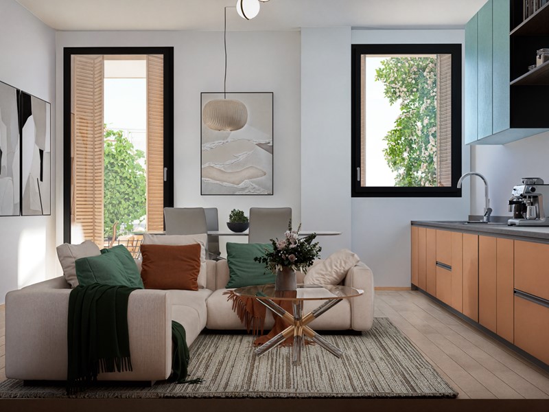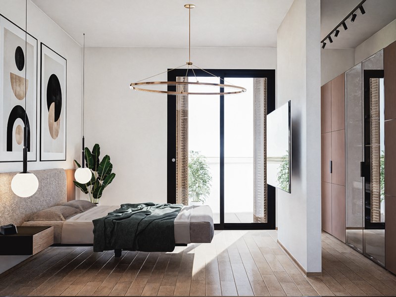 Due signorili attici composti da ingresso su luminoso ambiente living ed angolo cottura a vista, camera matrimoniale con cabina armadio, camera singola, doppi servizi e superficie terrazzata di circa 70 mq.