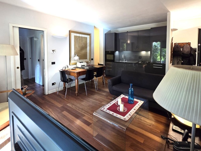 La zona giorno offre un accogliente soggiorno con cucina a vista, mentre la zona notte si compone di un atrio luminoso, due camere da letto e due bagni, uno dei quali con idromassaggio/bagno turco.