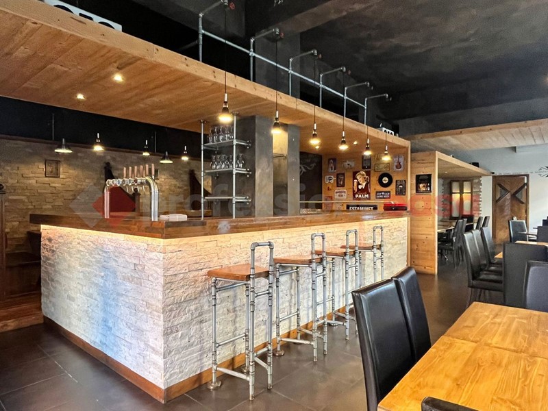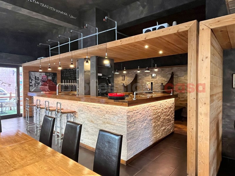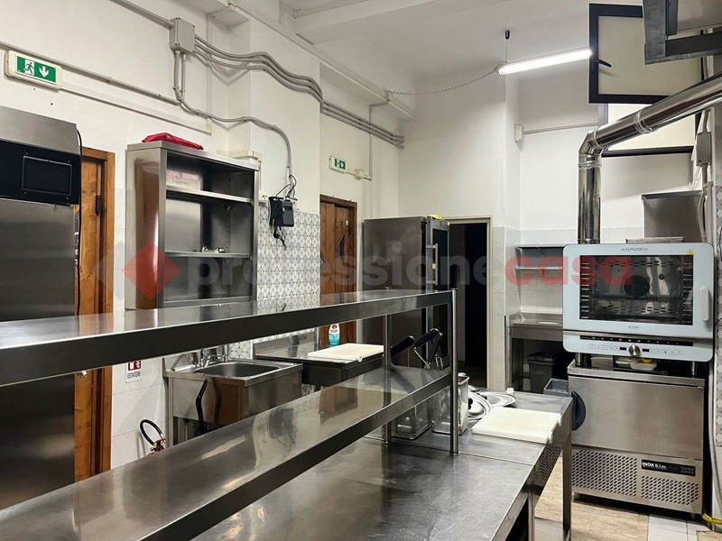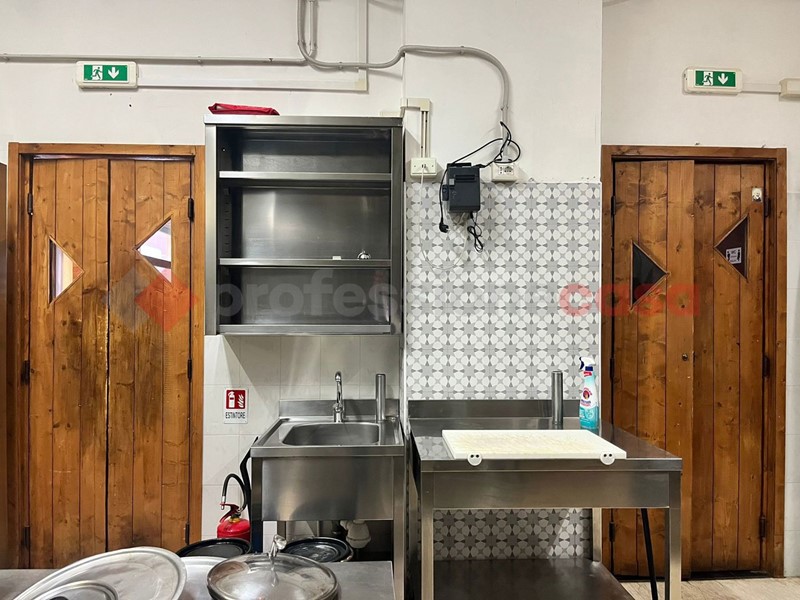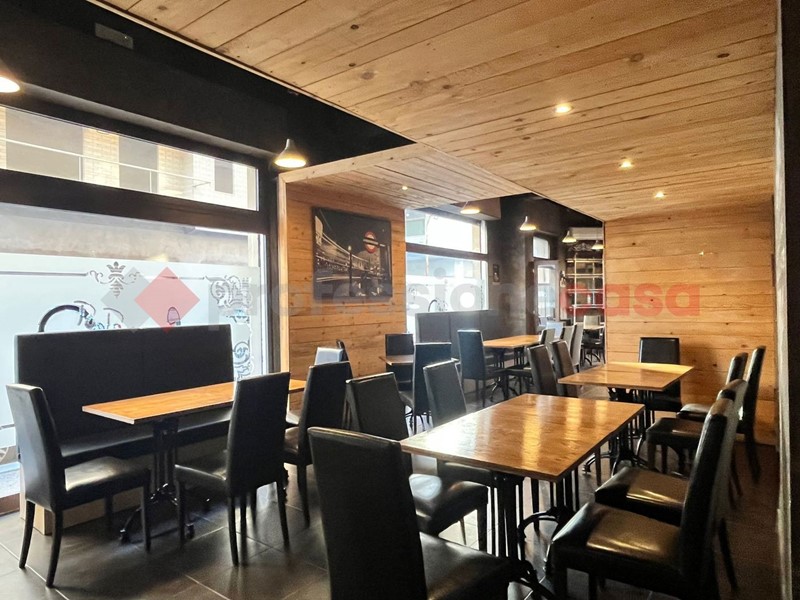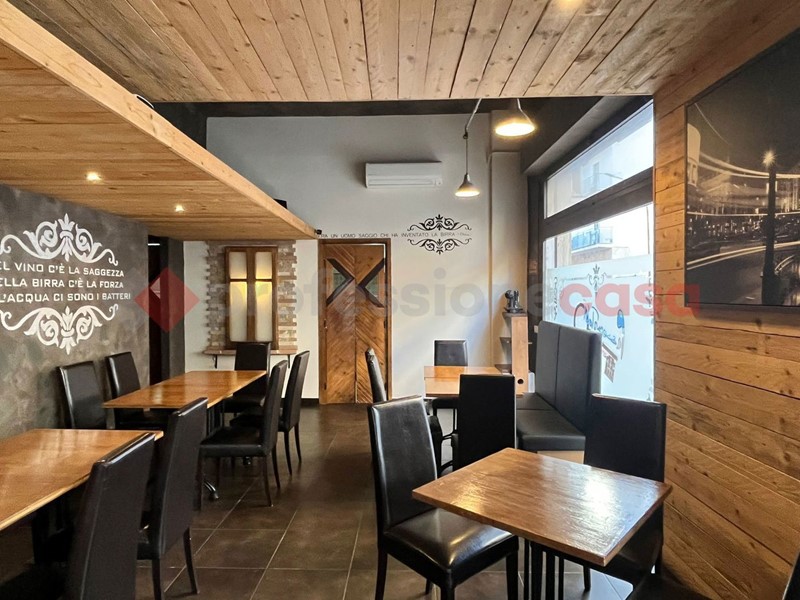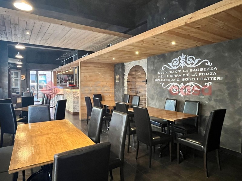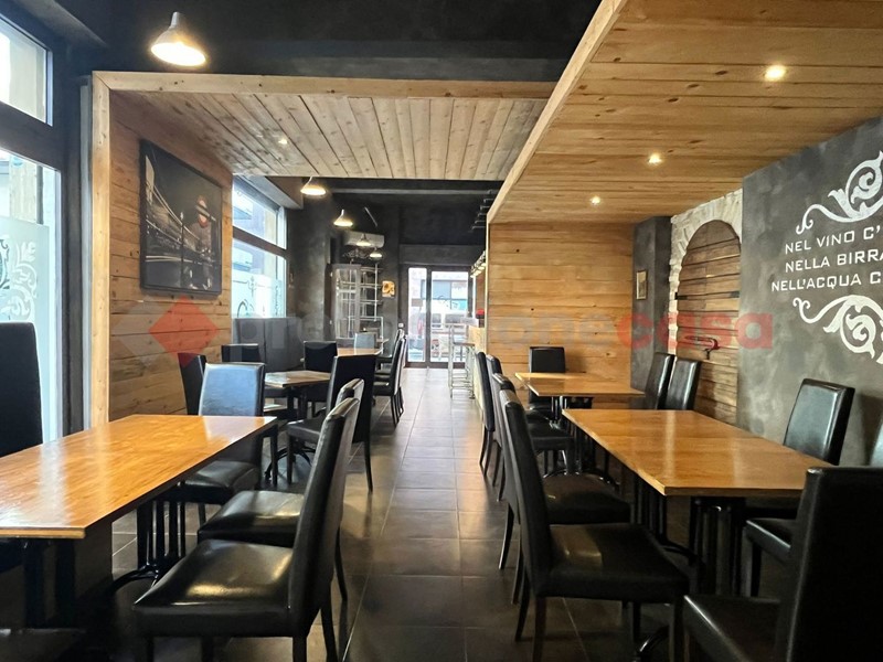Locale angolare con 5 vetrine e doppio ingresso, uno esclusivo per la cucina, perfettamente allestito per l'attività di Risto&Pub con 55 posti interni oltre quelli sull'area esterna. Locale climatizzato. Presenti servizi igienici per il pubblico, spogliatoio e bagno dipendenti, magazzino.
