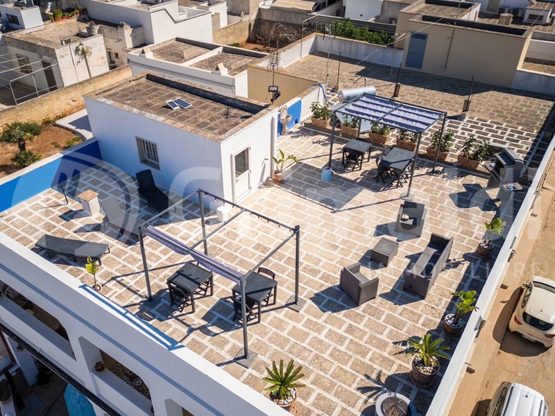 In zona centralissima nella marina di Torre San Giovanni, ormai rinomata area costiera di rilevante spessore data la lunghezza della spiaggia e la presenza di servizi attivi tutto l'anno, proponiamo in vendita struttura adibita a B&B recentemente ristrutturata, a soli 30 mt dal lungomare e dalla scogliera bassa praticabile. La soluzione si eleva su 2 piani con ingresso in cortile comune con doccetta esterna ad uso di tutti gli ospiti. Questa affascinante casa indipendente di circa 150 mq interni totali è suddivisa in n° 5 mini appartamenti, creando piccole oasi di comfort e stile. Al piano terra abbiamo un grazioso bilocale formato da soggiorno con angolo cottura e divano letto matrimoniale, camera matrimoniale e comodo bagno. Sul pianerottolo del primo piano invece troviamo 2 porte, la prima dà accesso all'appartamentino al momento ad uso del proprietario per la gestione della struttura, formato da soggiorno con angolo cottura, camera da letto, doppio servizio e ampio balcone angolare con vista mare. La seconda porta permette l'accesso a 3 monolocali composti ognuno da camera matrimoniale con angolo cottura e bagno completo. Due monolocali sono anche dotati di balcone vista mare. La fine dalla scala dà modo a tutti gli ospiti di poter accedere al lastricato solare di esclusiva proprietà della struttura, ove poter rilassarsi e godere di fantastici tramonti e serate all'aperto date le attrezzature in dotazione, quali gazebi con tavoli, zone relax con sdraio e barbecue. La struttura viene consegnata già attiva e avviata con: climatizzatori, sistema di videosorveglianza, pannelli solari per acqua calda, parziale arredamento, lavatrici e biciclette. La possibilità di essere utilizzata come struttura ricettiva o casa vacanza, rappresenta un'opportunità unica per chi desidera vivere la bellezza della costa salentina in totale comfort e vicinissima i servizi.
