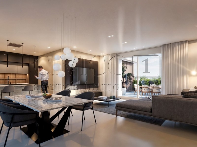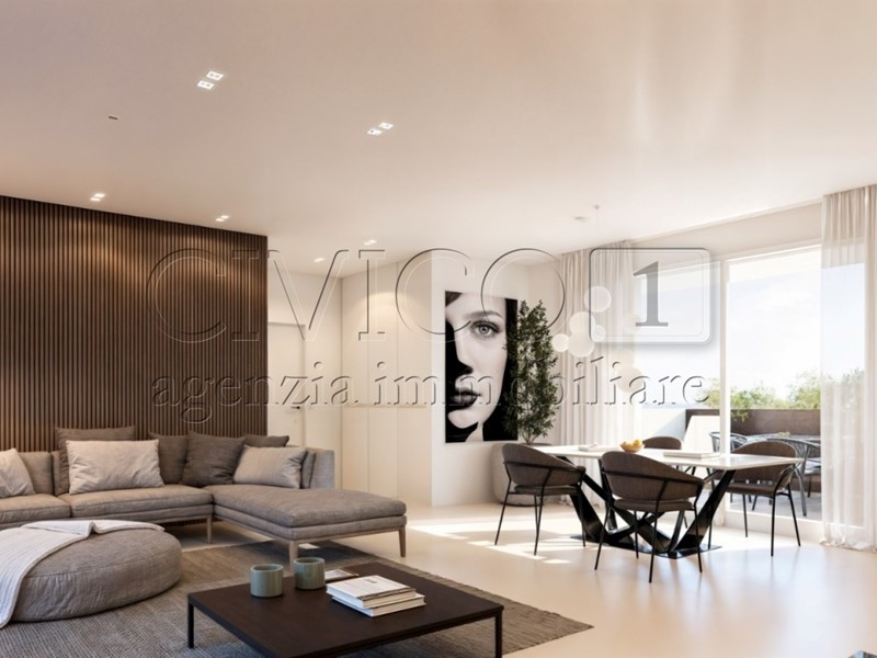 Proponiamo splendida unità in costruzione all'ultimo piano con ascensore in una moderna palazzina di pochissime unità, in Classe Energetica "A4". COMPLETAMENTE ESPOSTO AL SOLE questo appartamento si distingue per l'ampia zona living con doppio affaccio e la splendida vetrata scorrevole che si apreo sul terrazzo living.