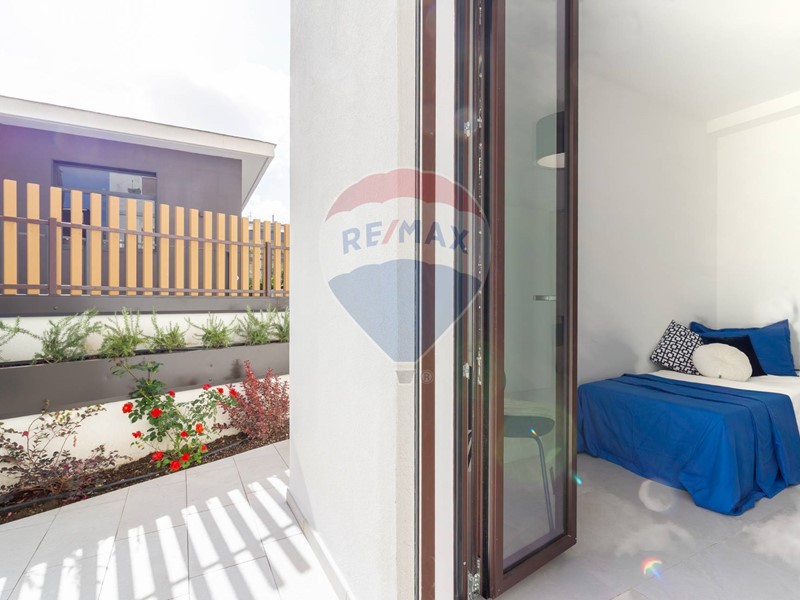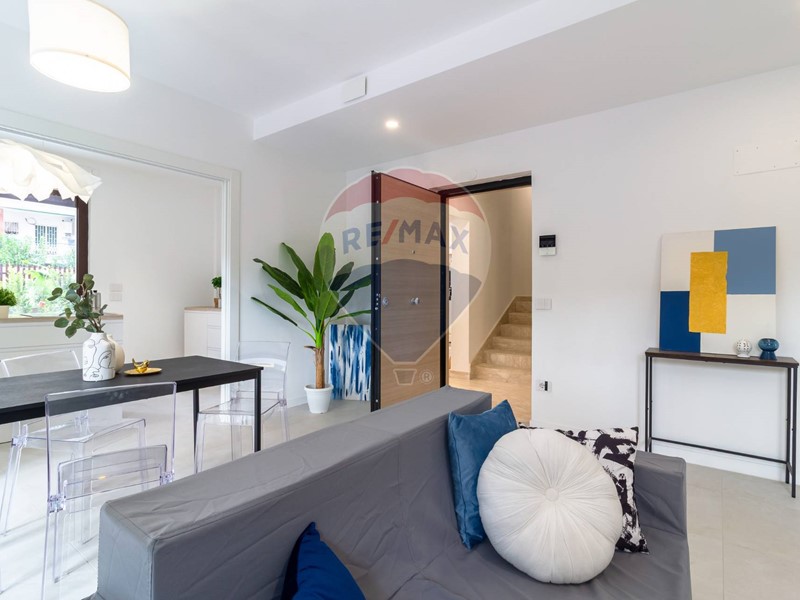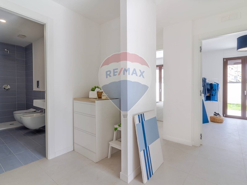 All' interno troverai un luminoso salone living, con angolo cottura predisposto per cucina ad isola, separati da una porta a scrigno, ampio bagno con doccia, mentre nella zona notte troviamo una camera da letto con bagno privato con vasca, dalla quale è possibile accedere direttamente al giardino, ed una postazione lavanderia, completano il tutto due accoglienti camerette.