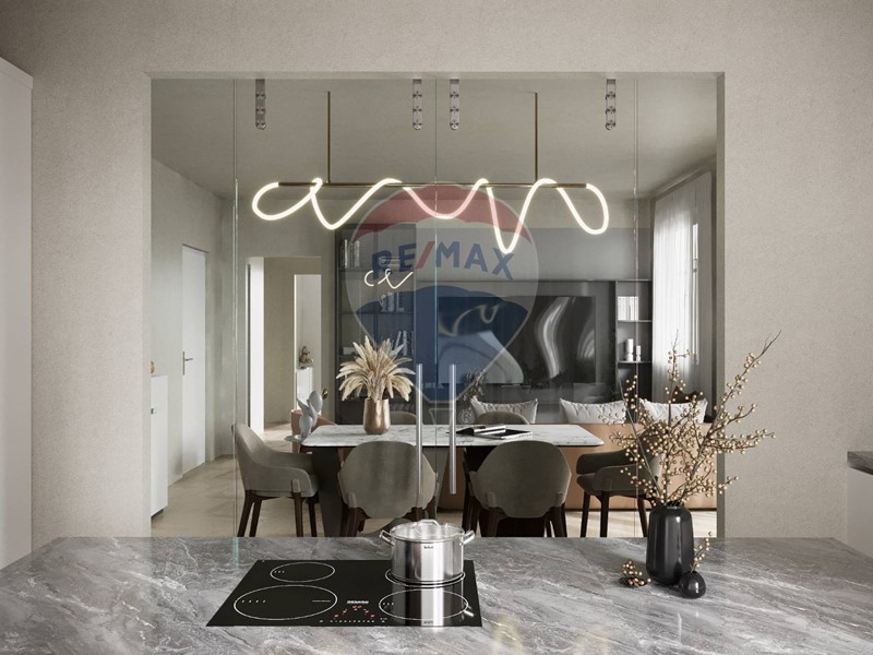 L'Appartamento, di circa 95 mq, è situato al secondo piano di sei, ed è composto da un luminoso salone living con cucina armoniosa e confortevole, che si fondono in un unico ambiente, offrendo tre accessi ad un balcone terrazzato di circa 28 mq, ampio bagno con doccia, mentre nella zona notte troviamo una camera da letto con cabina armadio, bagno privato con vasca, e piccolo balcone, completa il tutto un'accogliente cameretta.