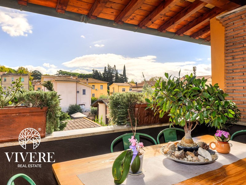 Nella zona dei Castelli Romani a Vermicino e più precisamente in via di Passo Lombardo VIVERE Real Estate cura la vendita di un luminoso e silenzioso attico in uno stabile di due piani all'interno di un comprensorio composto da due villini.