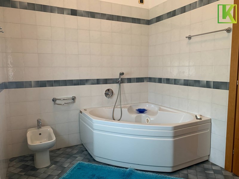 L'appartamento è posto al primo piano ed è raggiungibile sia da scala interna che tramite ascensore ed è composto da un ingresso centrale, cucina abitabile con balcone, ampio soggiorno con doppio affaccio, disimpegno per la zona notte dove troviamo una camera matrimoniale, una camera singola e due bagni, di cui uno con doccia e l'altro con vasca idromassaggio.