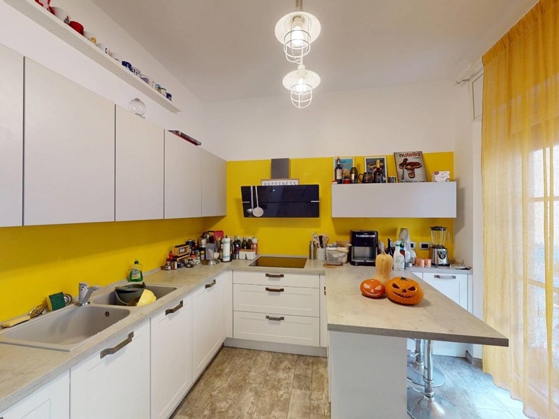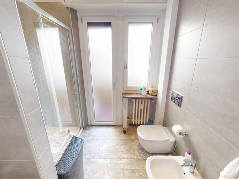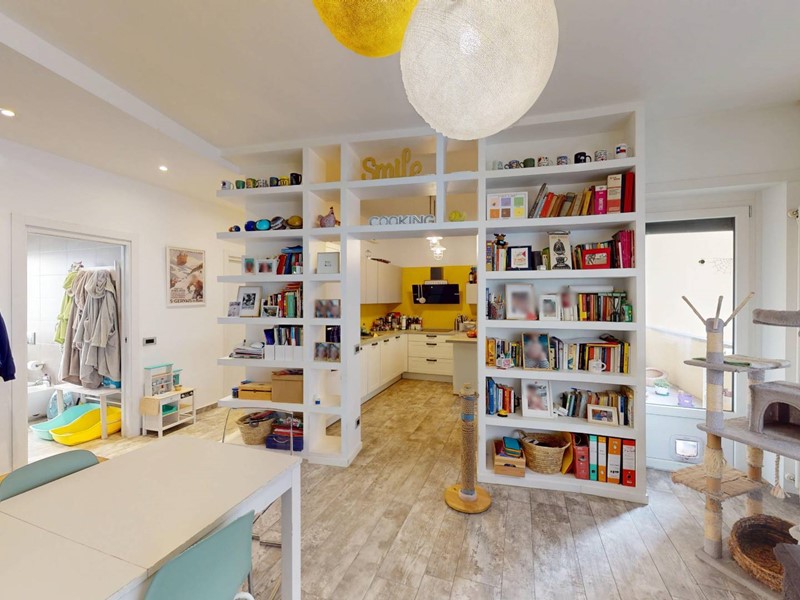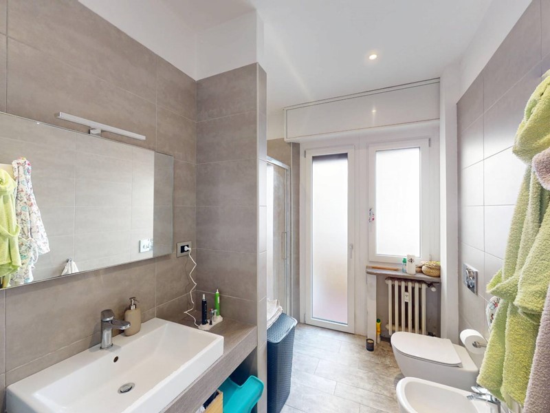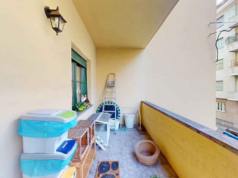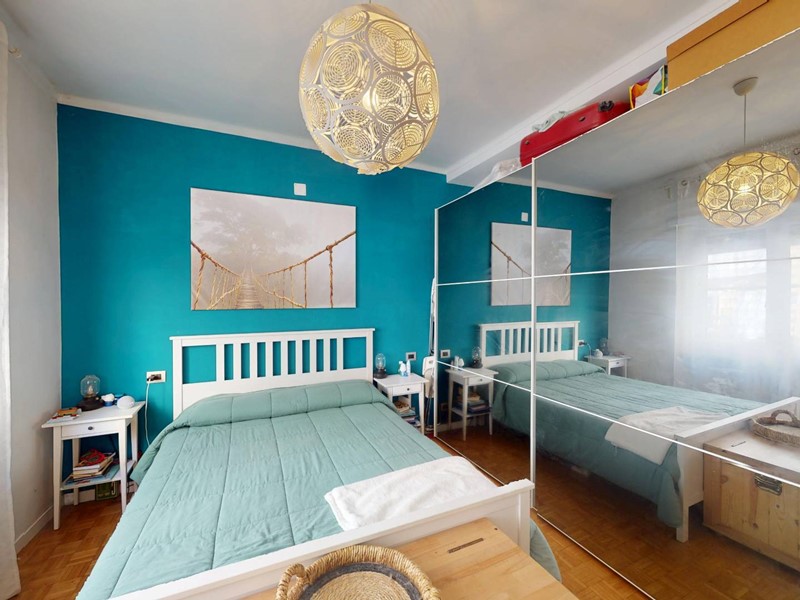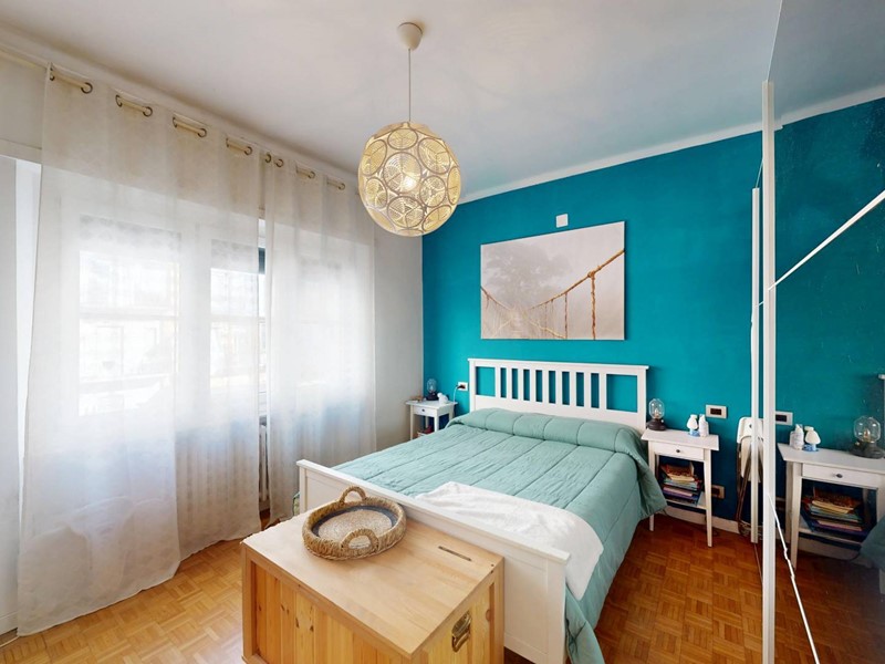 L'immobile, in ottime condizioni interne, è composto da ingresso, cucina abitabile, soggiorno, due camere da letto, doppi servizi di cui uno con accesso dalla camera da letto matrimoniale ed entrambi con finestra, comodo ripostiglio e due ampi balconi.