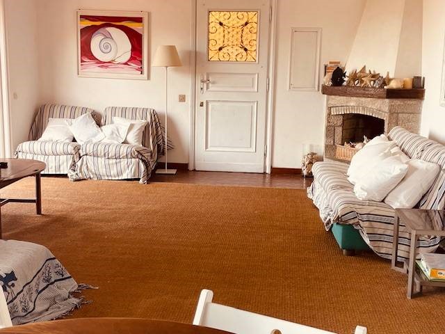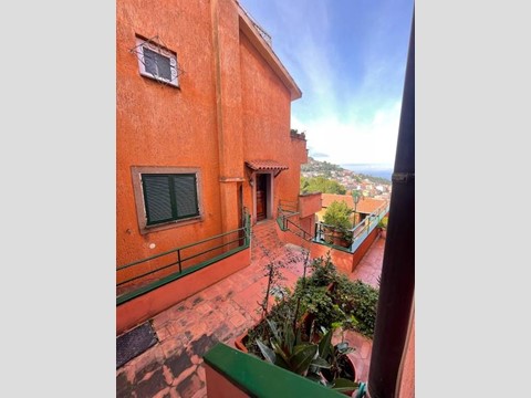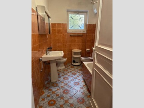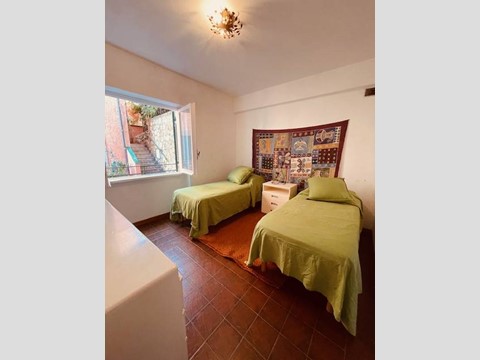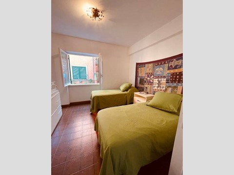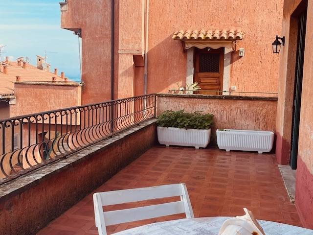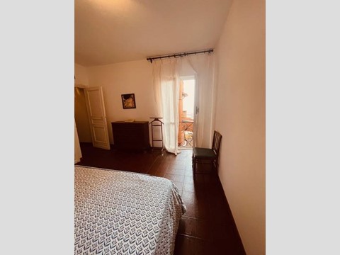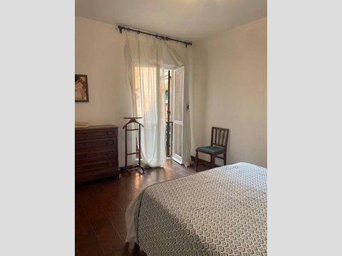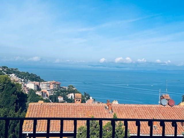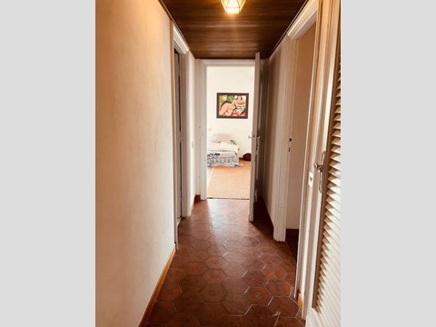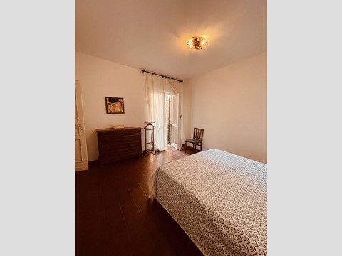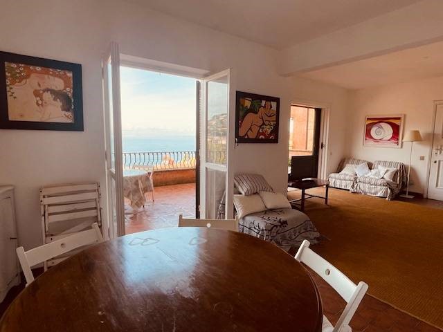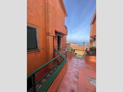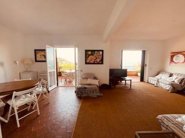 La zona giorno comprende un soggiorno doppio con accesso a una grande terrazza panoramica vista mare e una cucina abitabile collegata a una comoda e ampia corte di servizio. La zona notte si compone di due camere matrimoniali, una cameretta e due bagni. L'immobile necessita di lavori di ammodernamento, ma dispone già di impianto di riscaldamento a pellet.