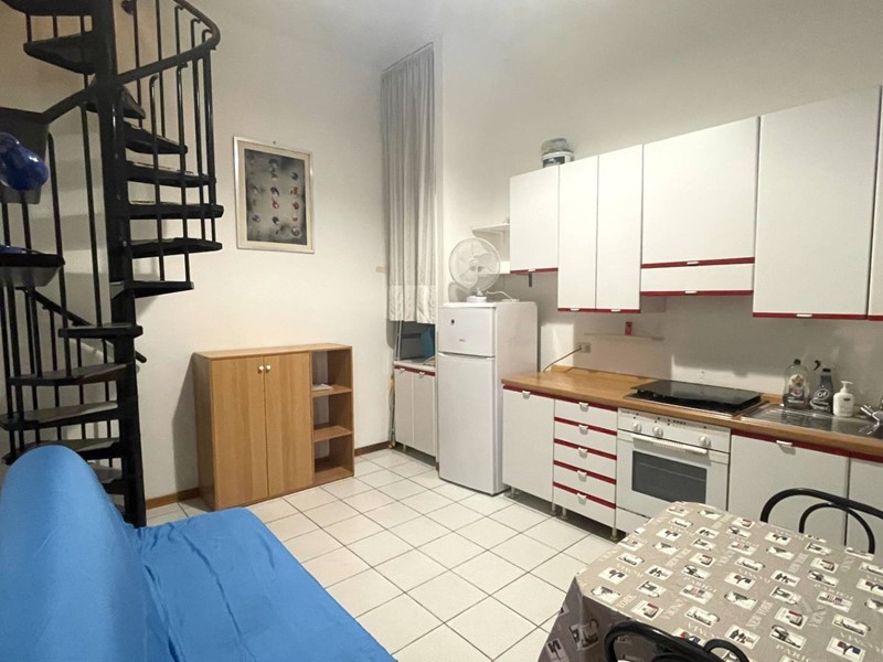 Appartamento dislocato su 2 livelli, ciascuno delle dimensioni di 20 mq. circa, composto al PIANO TERRA da soggiorno con angolo cottura e scala a chiocciola di accesso al PIANO PRIMO composto da camera da letto matrimoniale, bagno (con areazione forzata) e balcone di 6 mq. circa.