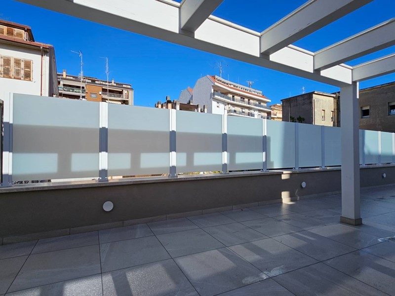 Nel cuore di San Benedetto del Tronto in piena isola pedonale, appartamento con terrazza nuovo e lussuoso in classe energetica A3, appena ultimato con una ristrutturazione completa e provvisto d'impiantistica di ultima generazione. L'immobile unico nel suo genere è ubicato in posizione strategica, in un contesto di massima privacy e tranquillità e allo stesso tempo sull'Isola Pedonale. L'unità abitativa è posta al piano terra ed ha una superficie complessiva di circa 51 mq divisa in ingresso su soggiorno con angolo cottura, disimpegno, camera matrimoniale e bagno con doccia. Con elegante scalinata posizionata nella zona giorno si sale accedendo ad un vano tecnico (fornito di allacci e scarichi) con uscita su di un'esclusiva terrazza di mq 77 in parte fornita di pergolato. Completa la proprietà una comodissima cantina. L'immobile ultimato con finiture di pregio e impiantistica all'avanguardia è fornito di riscaldamento e raffrescamento a pompa di calore con impianto programmabile da remoto, ampi infissi in pvc scorrevoli, sottopavimentazione areata, videocitofono e impianto di ventilazione meccanizzata. La sua posizione unica lo rende un ottimo investimento sia ad uso residenziale che come pied-à-terre esclusivo nel cuore della città. Possibilità di metratura superiore.