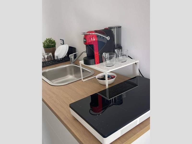 Ogni appartamento è così composto: un unico locale da 30 mq totalmente arredato, che funge da soggiorno e camera da letto, un bagno e una cucina a vista, arredata e funzionale con mobili moderni e dotata di tutti gli elettrodomestici necessari.