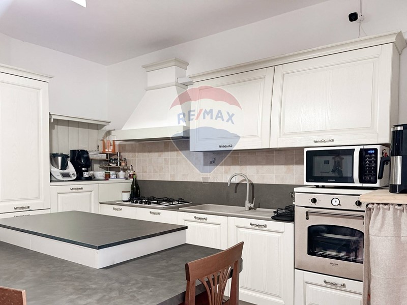 Zona living luminosa con cucina moderna con isola, perfetta per chi ama cucinare e ospitare;