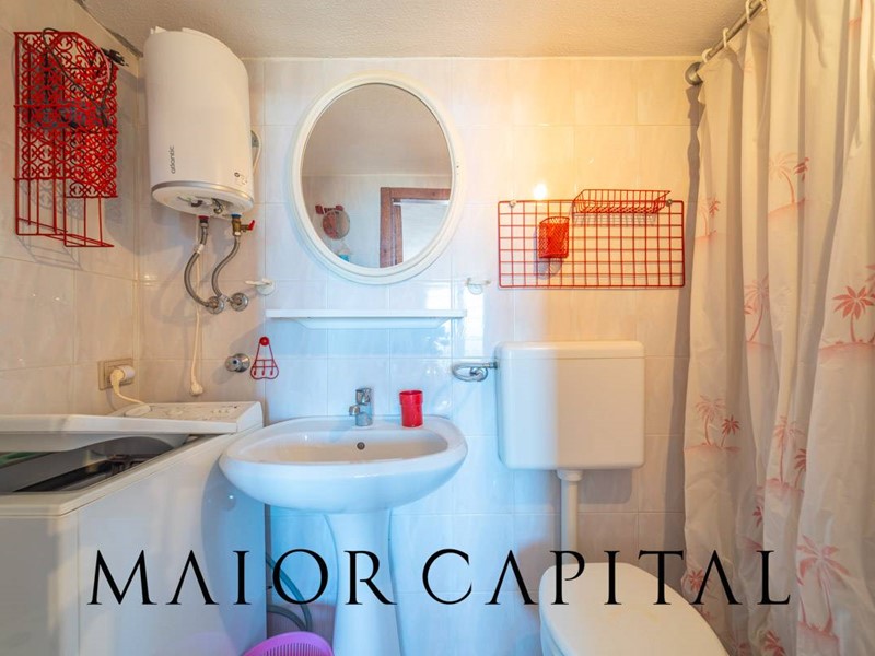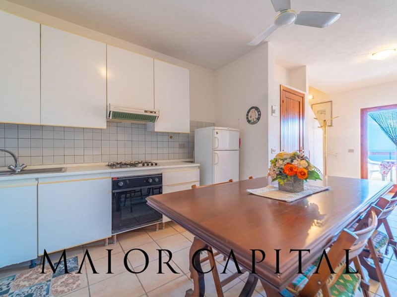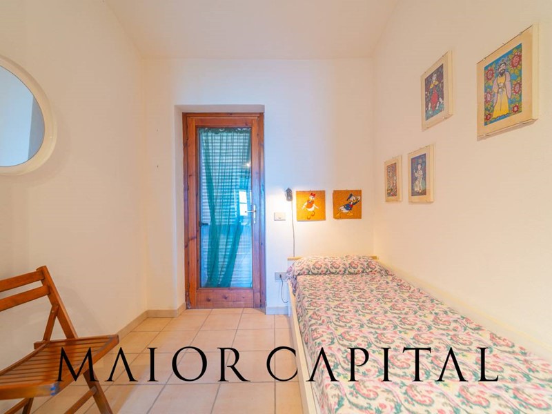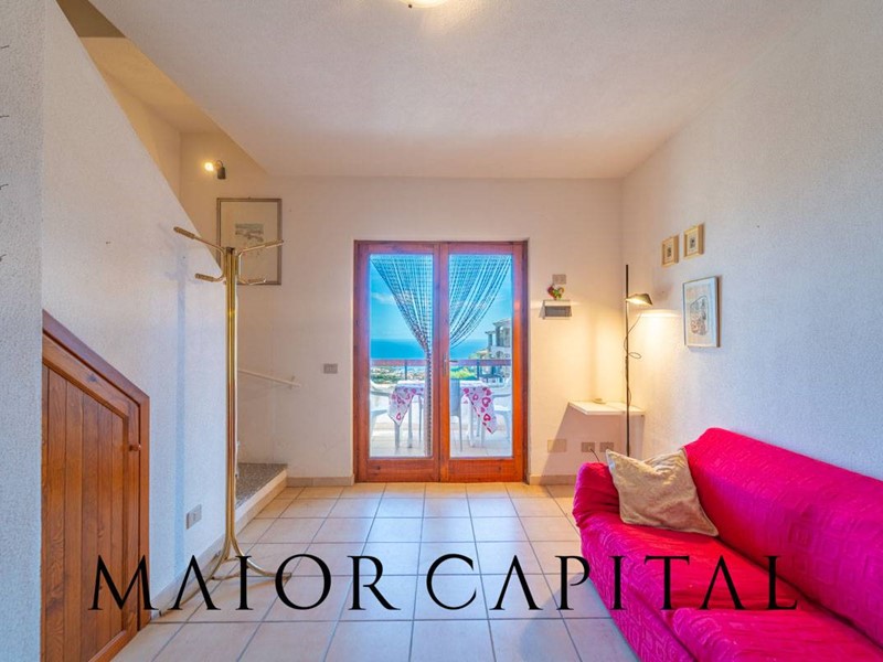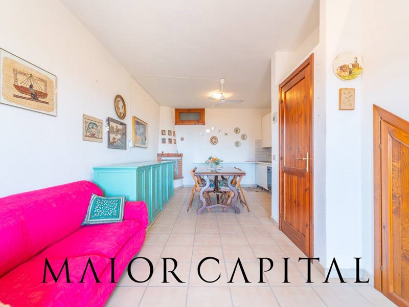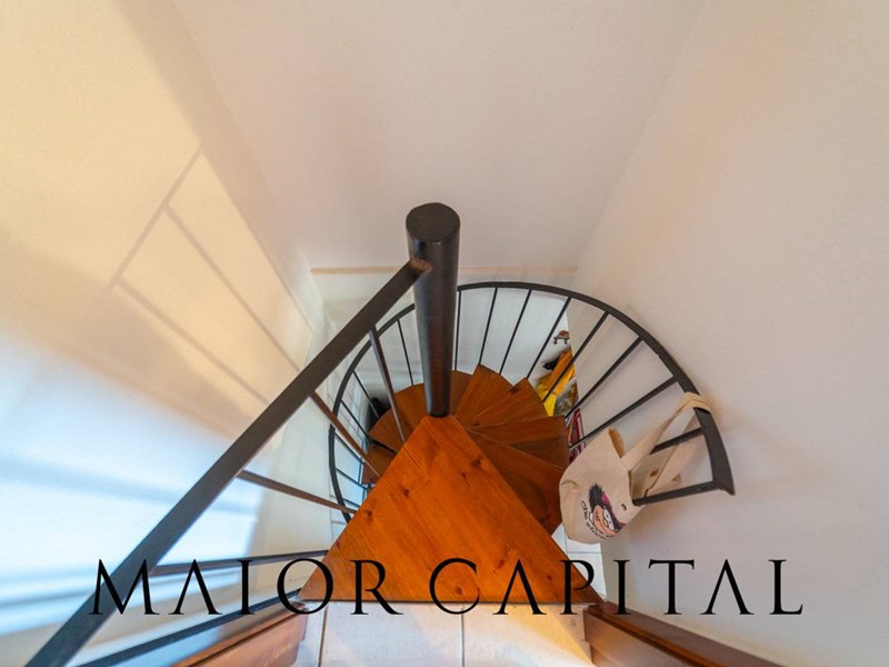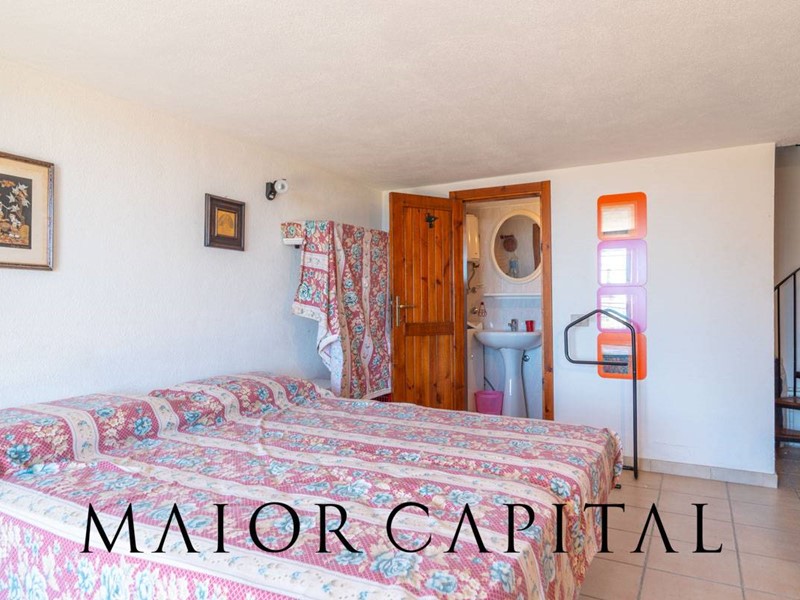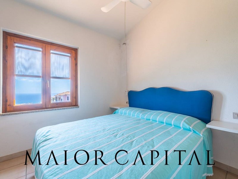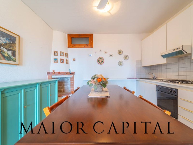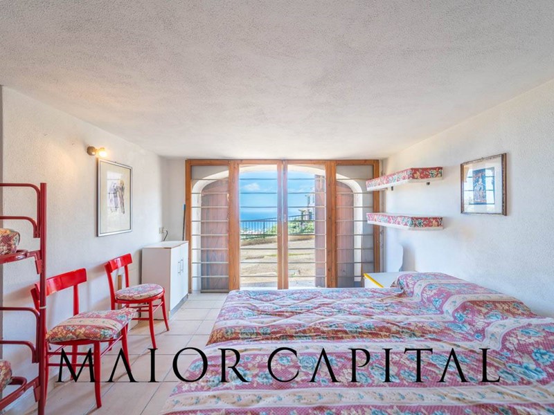 Disposto su tre livelli, il villino accoglie al piano rialzato una luminosa zona giorno con cucina a vista, arricchita da un camino in pietra locale perfetto per le serate invernali, e con accesso diretto a una veranda coperta con vista panoramica sul mare. Al piano superiore, la zona notte dispone di una camera matrimoniale e una camera singola. Al piano superiore si trovano la camera matrimoniale, una camera singola e il bagno. Una scala a chiocciola interna collega al piano seminterrato, dove è presente un ambiente ampio e luminoso con bagno, ideale come spazio aggiuntivo. Completa la proprietà una piccola corte sul retro.