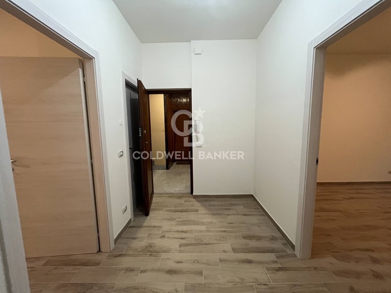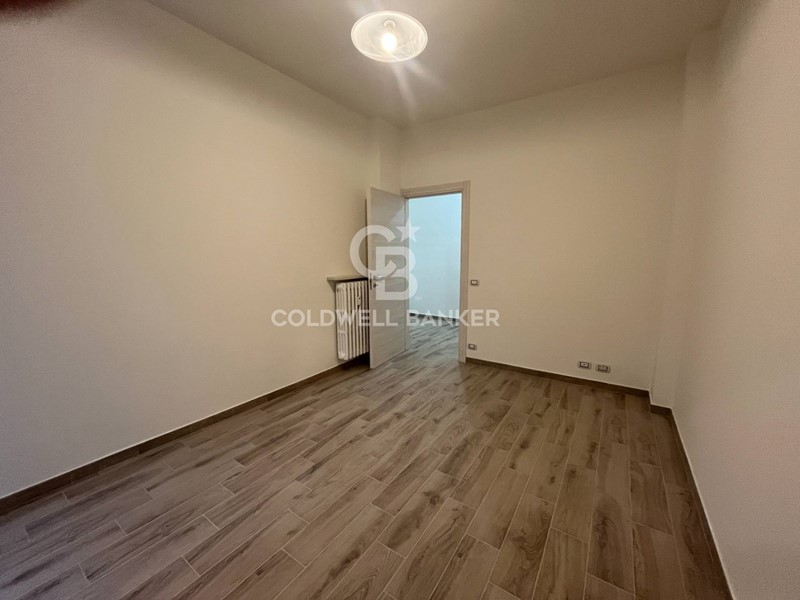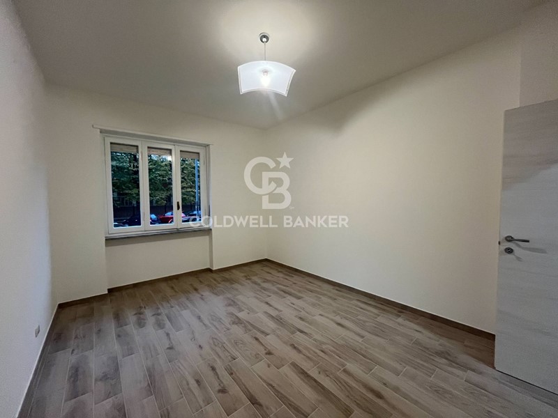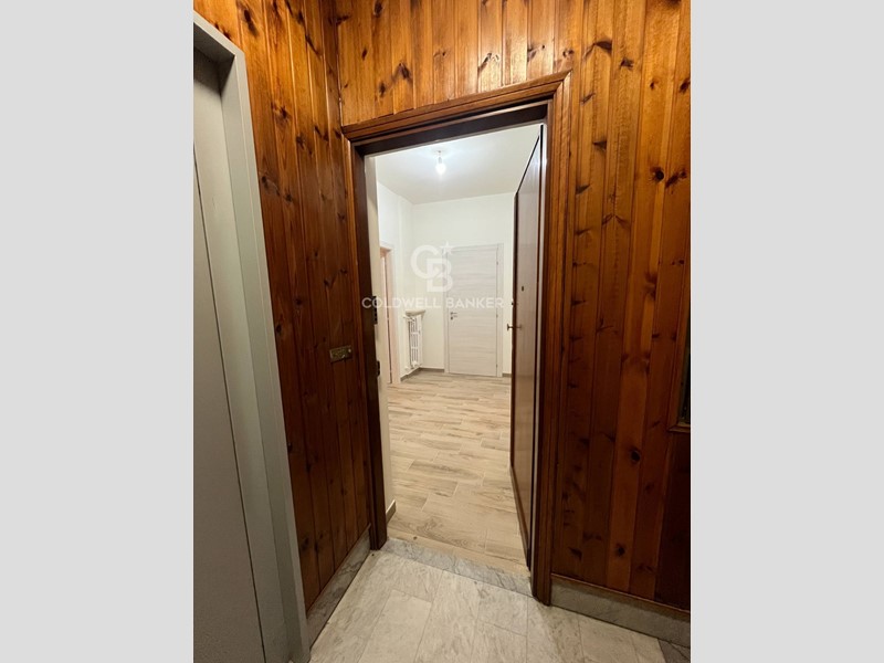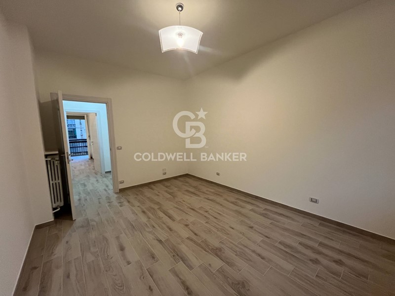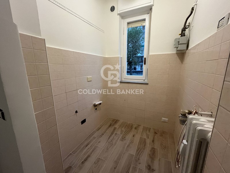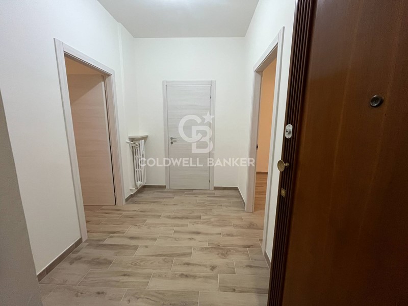 L'appartamento ha la camera da letto che affaccia lato C.so Roma mentre il tinello affaccia su un ampio balcone lato cortile da cui si vede il giardino condominiale.