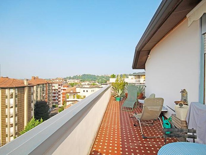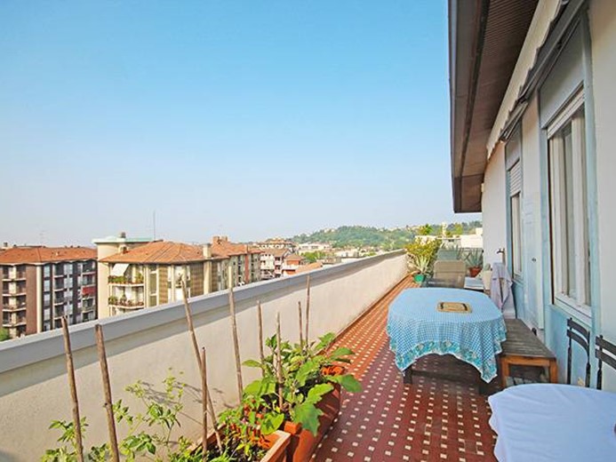 La proprietà è esposta su 3 lati e gode di una vista della città, da città alta, la terrazza lambisce completamente i lati dellimmobile e tutti gli ambienti godono di accesso ad essa.