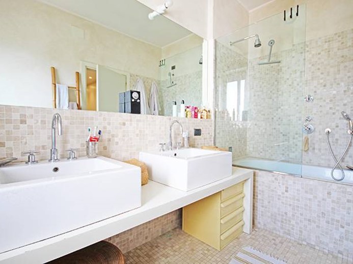 E facilmente possibile ottenere una terza camera da letto dividendo il grande soggiorno (come era in origine) o utilizzare la grande cucina con bagno come camera padronale e creare un open space soggiorno / cucina di notevole impatto.