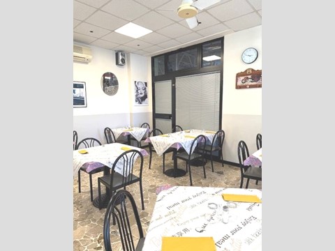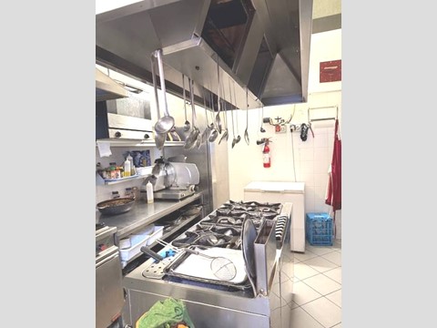 Lambiente è luminoso e curato, con ampia vetrina su strada, cucina completamente attrezzata e canna fumaria a norma. Gli spazi di servizio comprendono bagno clienti e bagno per il personale, tutto in perfette condizioni e pronto alluso.