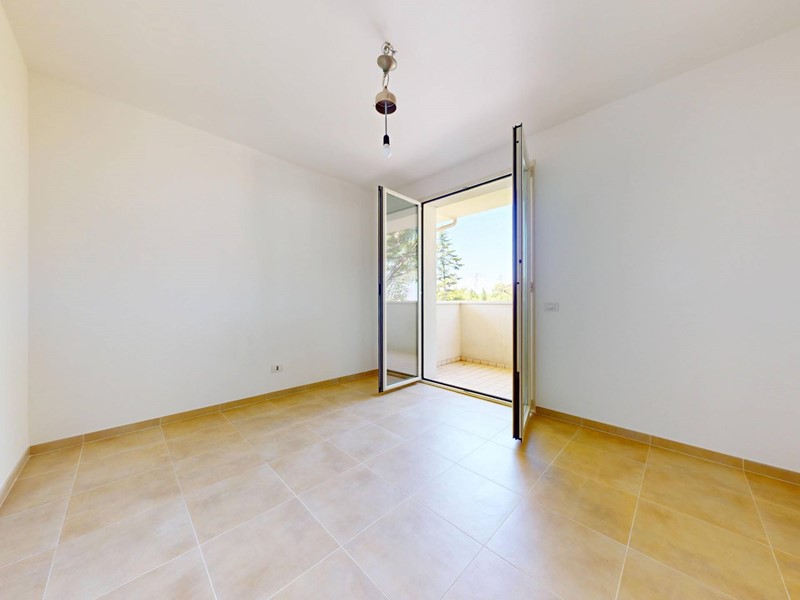 La zona notte ospita una camera matrimoniale e una seconda camera, entrambe affacciate su un ampio balcone, oltre a un bagno finestrato. Gli ambienti risultano ben distribuiti, valorizzati da una progettazione funzionale e razionale.