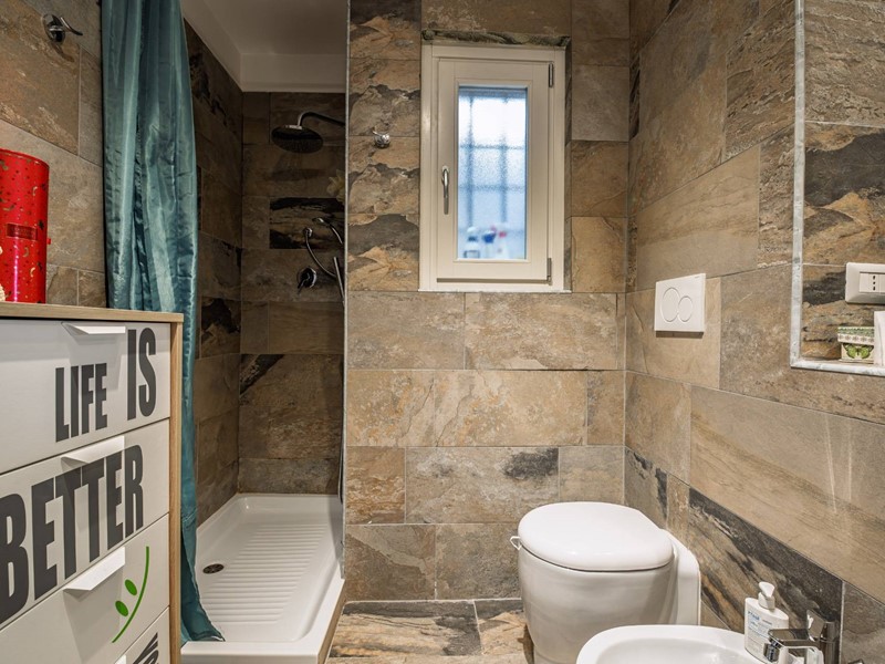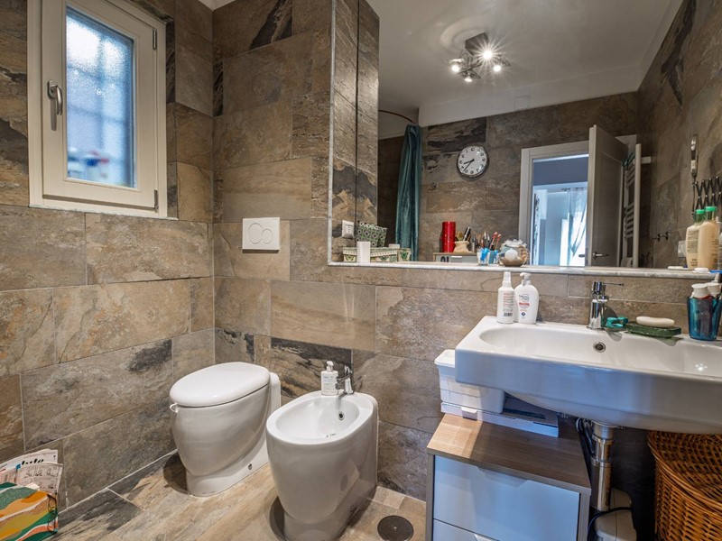 L'abitazione beneficia di un cappotto termico esterno, una moderna caldaia a condensazione e infissi in legno con vetrocamera ad alto isolamento.