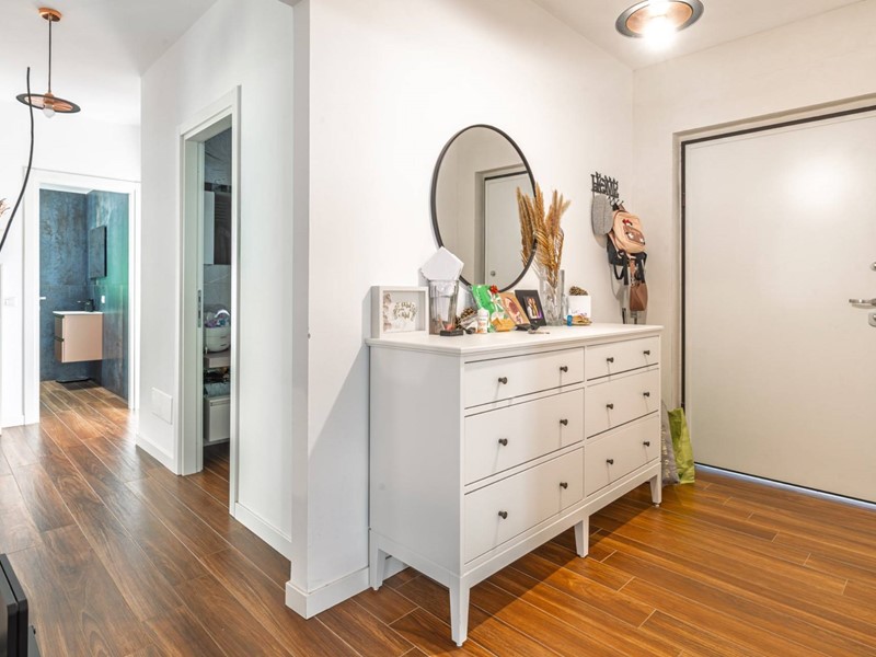 L'appartamento si apre su un accogliente ingresso che introduce a un ampio salone e a una cucina abitabile, entrambi caratterizzati da accesso diretto al terrazzo ideale per momenti conviviali all'aperto. Un corridoio conduce alla zona notte, composta da tre camere da letto matrimoniali, due bagni finestrati e un balcone con suggestiva vista panoramica sulla vallata.
