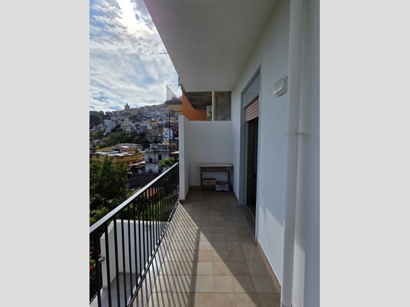 L'immobile si presenta abbastanza spazioso: dall'ingresso si accede al soggiorno ed alla cucina separata, entrambi con accesso ai balconi panoramici, dai quali è possibile godere di una bella vista aperta sul paese e sul paesaggio circostante. La zona notte comprende una camera matrimoniale, una seconda camera più piccola, ideale come cameretta o studio, e un bagno con finestra.