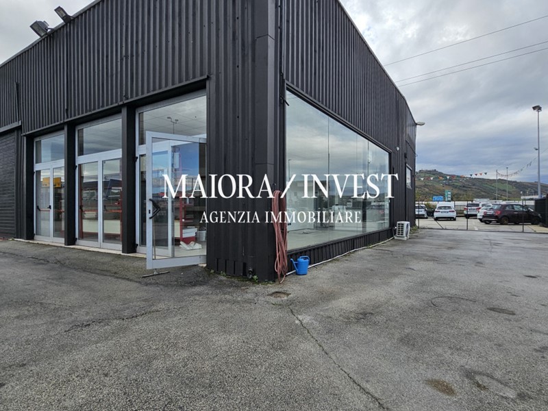 SAN BENEDETO DEL TRONTO - In ottima posizione limitrofa allo svincolo autostradale su strada ad alto traffico veicolare e altamente visibile, locale commerciale posto al piano terra di circa mq 115 oltre ampio piazzale antistante recintato con accesso carrabile. L'immobile è composto da due vani di cui uno ufficio e l'altro con vetrine su strada oltre ad un bagno. Fornito di riscaldamento e raffrescamento con pompa di calore. Canone di locazione euro 1100,00 + iva. Solo Referenziati. Codice riferimento 1491. Agenzia Immobiliare Maiora/Invest.
