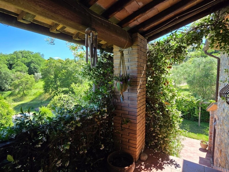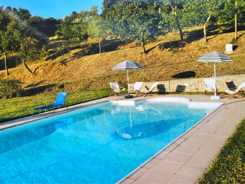 A circa 100m troviamo una dependance elegante di circa 90mq, anch'essa restaurata, composta da soggiorno con angolo cottura, camino e stufa a legna, bagno, camera da letto con stufa a legna, magazzino e portico.