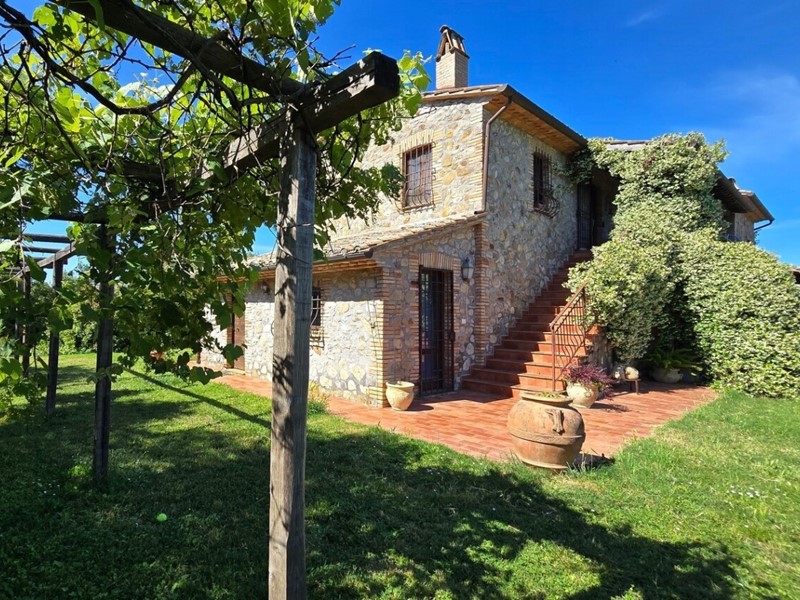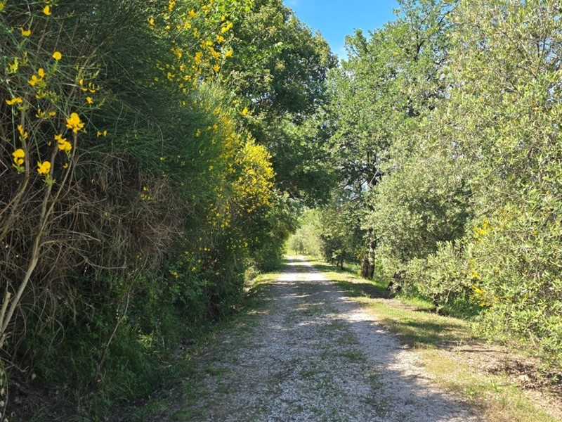 Dal cancello automatico, con colonne in pietra, si apre un lungo viale che conduce al casale padronale ed alla dependance, mentre dal perimetro recintato si aprono vari percorsi naturalistici attraverso il bosco confinante di proprietà.