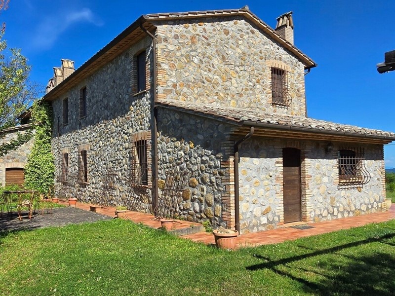 In posizione riservata con vista panoramica sulla splendida campagna umbra e la silhouette di Orvieto sullo sfondo, vendiamo una bellissima proprietà composta da un casale di 435 mq, una dependance di 90 mq, una piscina di circa 70 mq, due ampie tettoie per auto e attrezzi, un'antica grotta e 24 ettari circa di terreno circostanti suddivisi tra giardino, bosco, seminativo, vigneto ed uliveto.