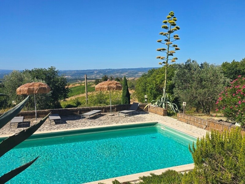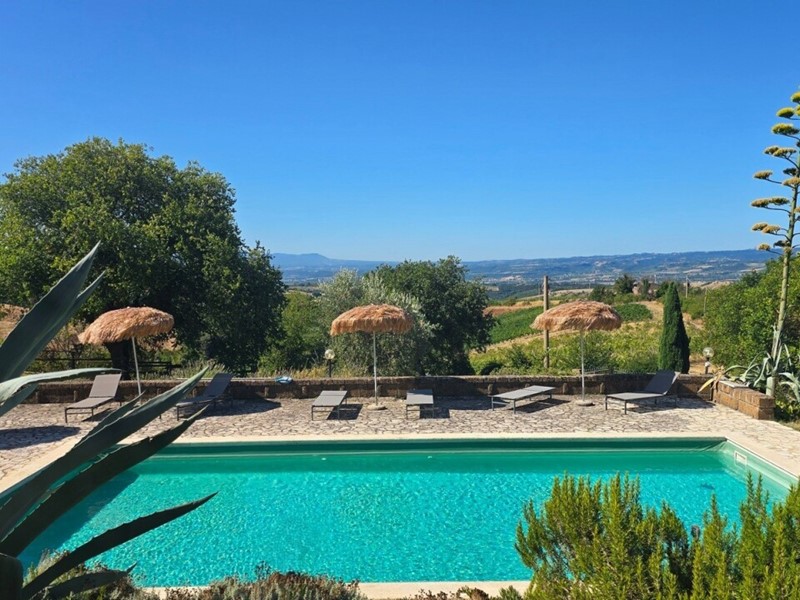 In posizione panoramica e silenziosa, circondato solo dalla splendida campagna umbra, a metà strada tra Orvieto e Todi e circa 5km dai antichi borghi di Montecchio e Civitella del Lago, vendiamo una Tenuta con due casali, piscina, 3ha di vigneto, 100 piante di ulivo, seminativo e bosco. Possibilità di acquistare ulteriore terreno con vigne per un azienda agricola ricercata.