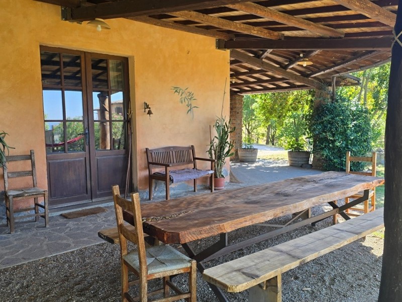 Su tre lati del casale, con accesso dalla sala da pranzo, troviamo un porticato di 155mq per pranzi all'aperto.