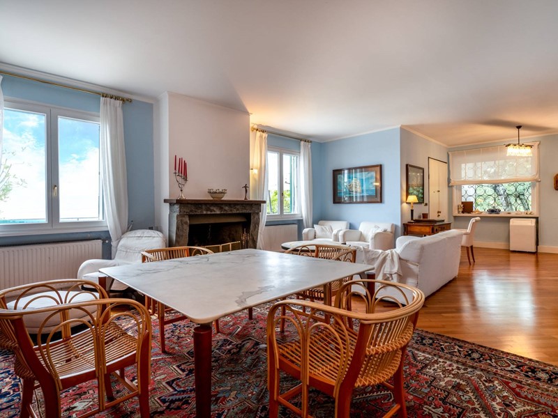 La residenza, di circa 300 mq, si sviluppa su due livelli ed è impreziosita da pavimenti in parquet in tutti gli ambienti. Al piano terra si trovano due ingressi indipendenti, un ampio e luminoso salone con camino e sala da pranzo affacciata sul mare, una cucina abitabile e un bagno di servizio.
