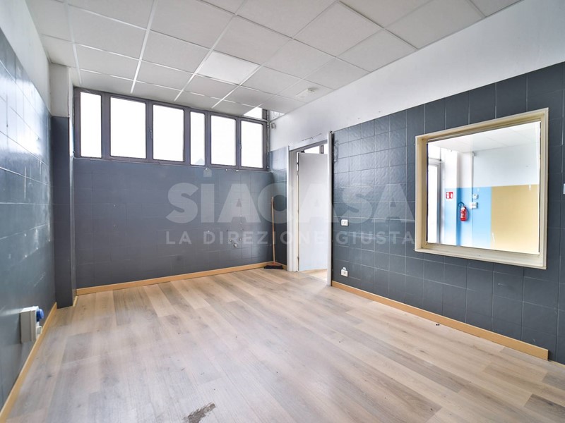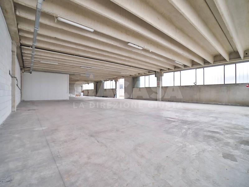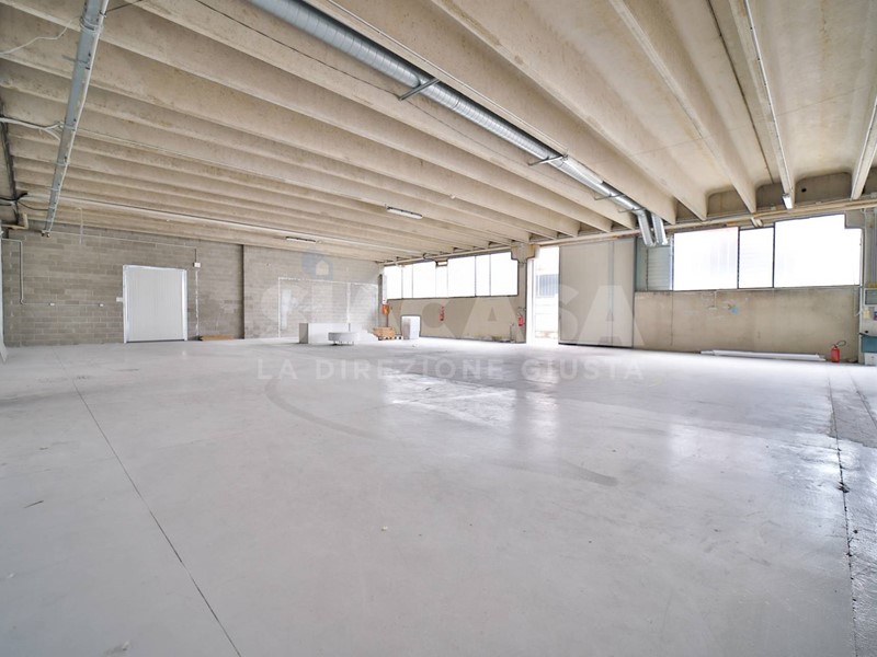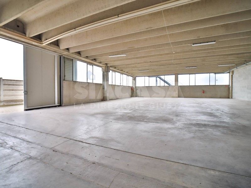 Alle sue spalle si sviluppano tre magazzini: due di circa 320 metri quadrati ciascuno e uno di circa 340 metri quadrati, tutti con altezza interna di 4,20 metri sottotrave, portoni carrai da 4 metri, impianto di illuminazione, manichette antincendio interne e predisposizione per bagno.