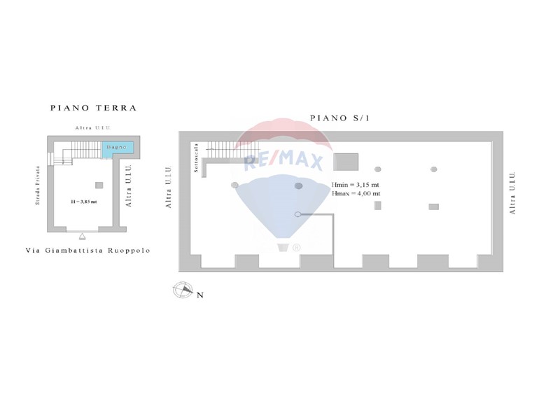 - piano seminterrato, collegato internamente con una comoda scala, troviamo un ampio locale di circa 196 mq, con altezza fino a 4,00 metri.