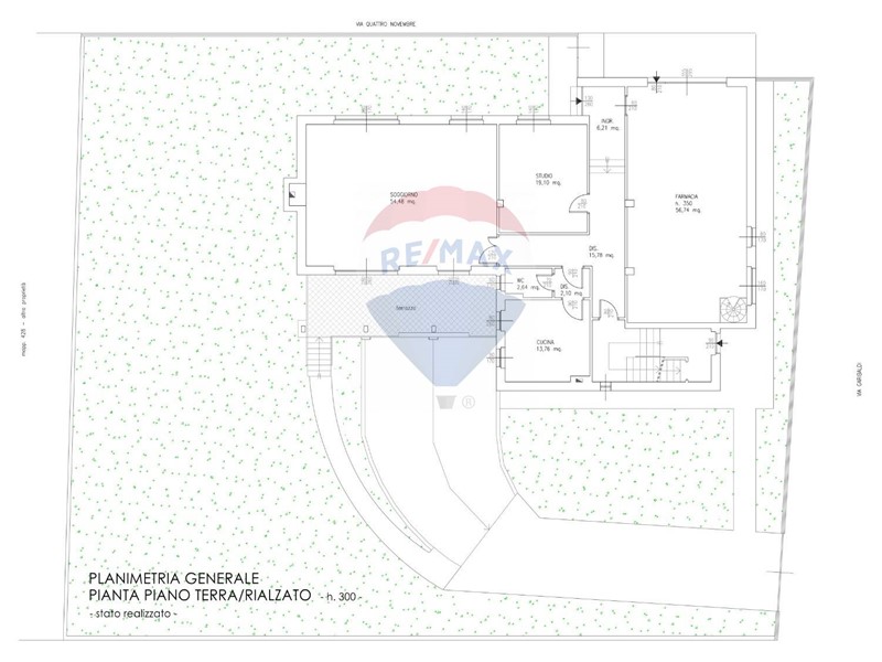 RESIDENZIALE di circa mq. 354. La zona giorno si sviluppa al piano terra, caratterizzata da un LOCALE LIVING di circa mq. 54, dove la zona soggiorno e la zona pranzo godono del camino, della luminosità straordinaria data dalla doppia esposizione e dalle grandi vetrate che conducono al terrazzo coperto con vista giardino. Afrormosia è lessenza del legno del parquet. Anche la cucina abitabile di circa mq. 13 accede al TERRAZZO COPERTO mentre un locale studio , i corridoi e il wc finestrato concludono il piano terra. Impianto di condizionamento presente nell'area living e in una camera da letto.