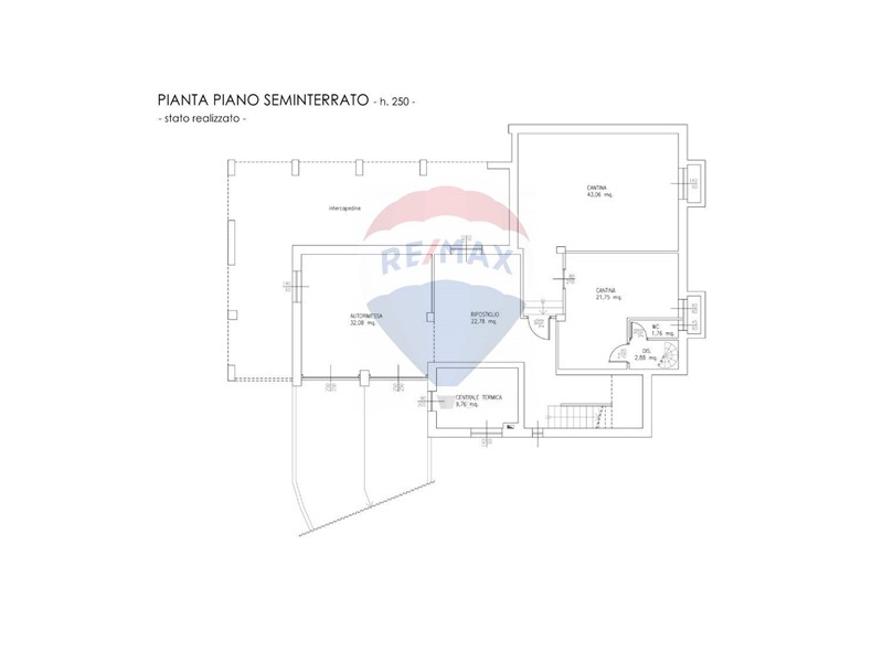 Si conclude con il piano seminterrato con una CANTINA di circa mq. 43, un ripostiglio, un locale caldaia con accesso dallesterno.