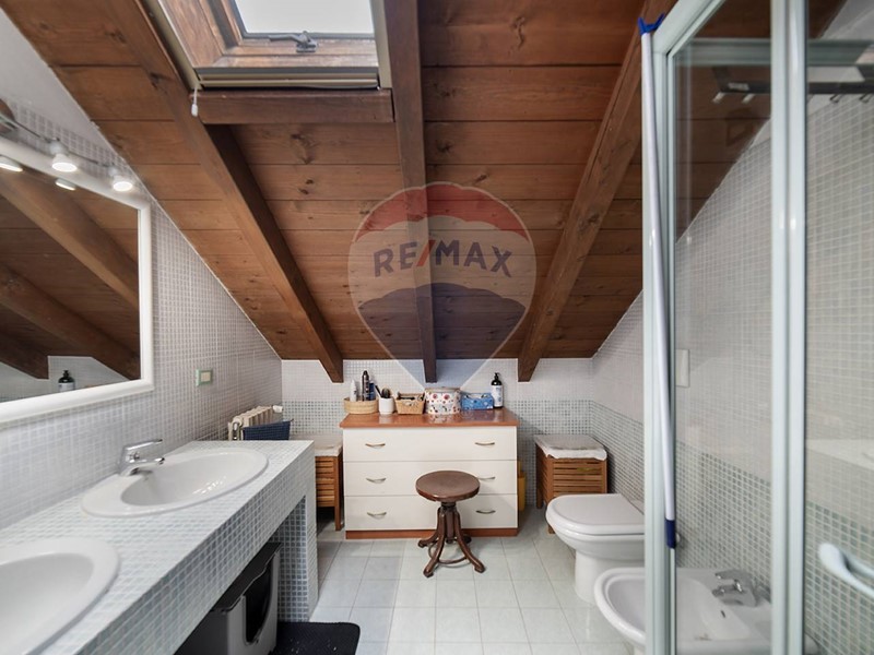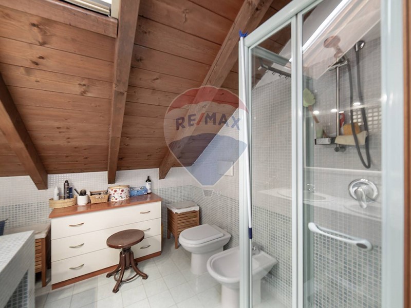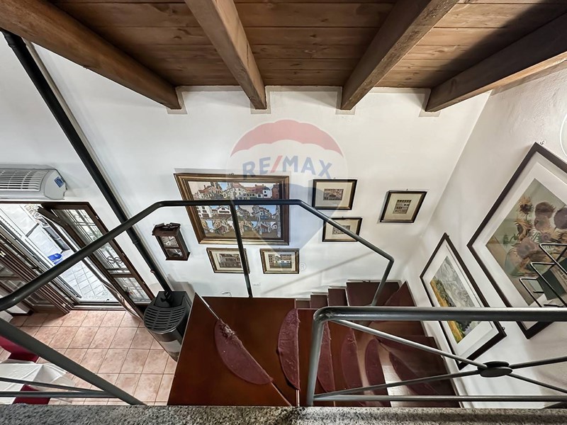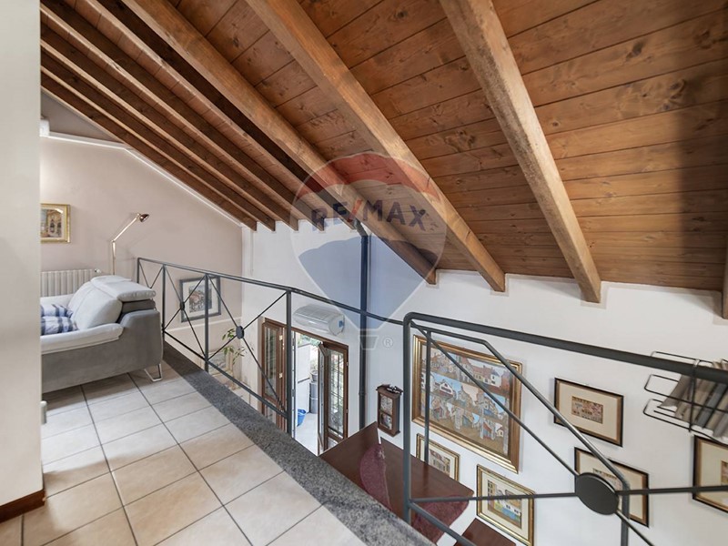 La scala di design a vista che collega i due livelli, conduce alla mansarda e ad un locale hobby altrettanto suggestivo. Questo open space con travi a vista e affaccio sulla zona giorno, si configura come un accogliente rifugio, completo di tutti i comfort e servizi, ideale per trasformarsi in studio o area relax, un ulteriore spazio che non solo raddoppia la metratura vivibile, ma invita a esplorare le proprie passioni e bisogni quotidiani in un contesto caldo e confortevole.