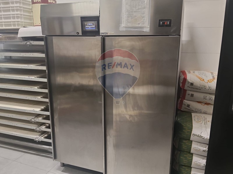 Laboratorio di produzione: ampio e perfettamente attrezzato, dotato di forno, impastatrice, fermalievita, armadi frigo, tavoli da lavoro, carrelli e tutti i macchinari necessari per lattività di panificazione e gastronomia.