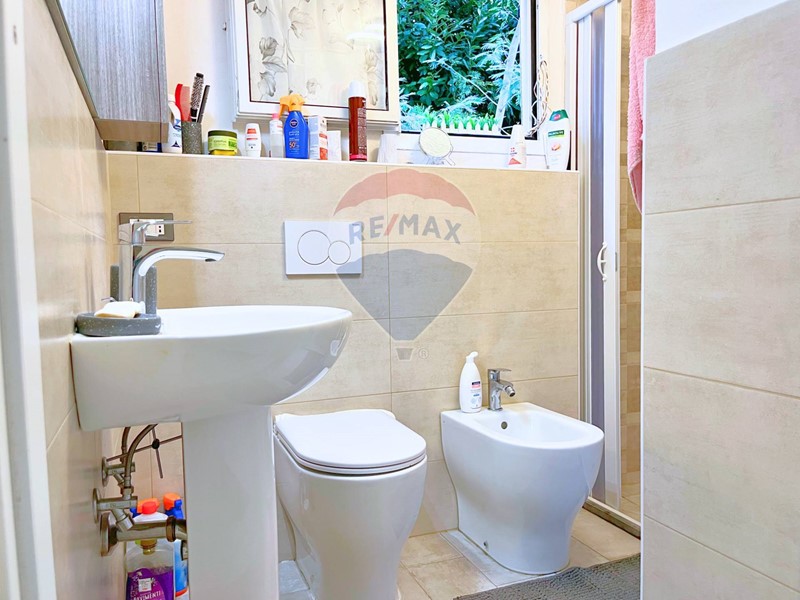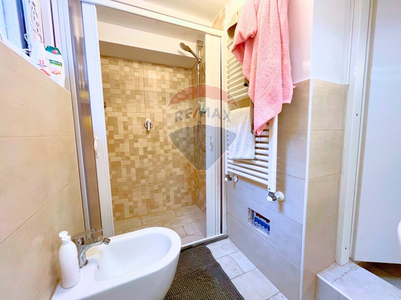Il BAGNO è dotato di una DOCCIA AMPIA, TERMOSIFONE ELETTRICO e SANITARI MODERNI, inoltre è completamente piastrellato.