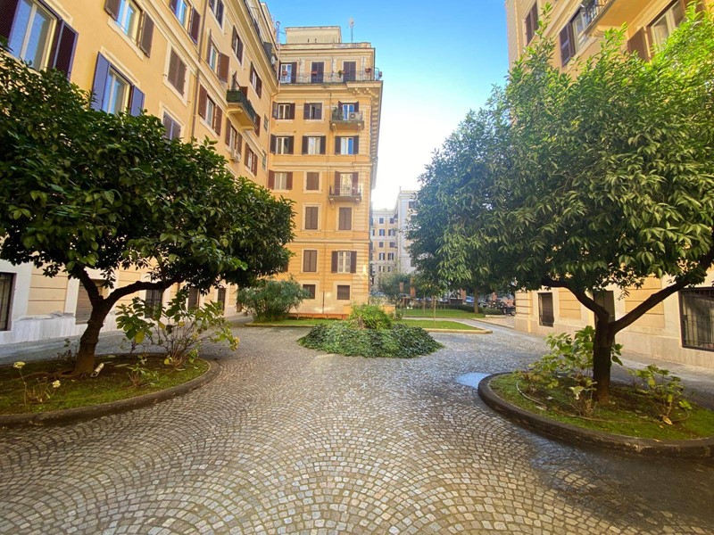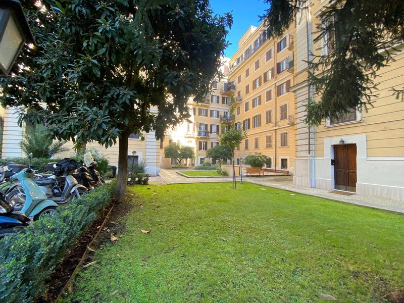Possibilità di parcheggiare moto e bici nelle zone adibite del ben tenuto cortile condominiale, dove affacciano giardini con alberi ad alto fusto che donano fascino ed eleganza allo stabile.