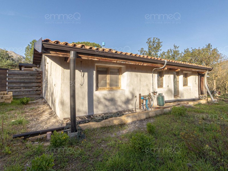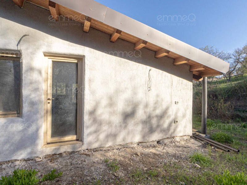 La casa presenta tre uscite esterne, tetto in legno e finiture particolari, con muri realizzati in balle di paglia intonacate, che garantiscono ottimo isolamento termico e sostenibilità ambientale. Le fondamenta sono realizzate con struttura ciclopica in pietra e gabbioni ancorati.