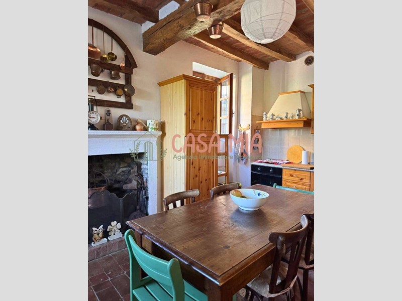 L'immobile si sviluppa su tre piani ed è stato ristrutturato con materiali di pregio, mantenendo però intatte le caratteristiche originali dell'epoca, come i soffitti con travi in legno a vista e i pavimenti in cotto.
